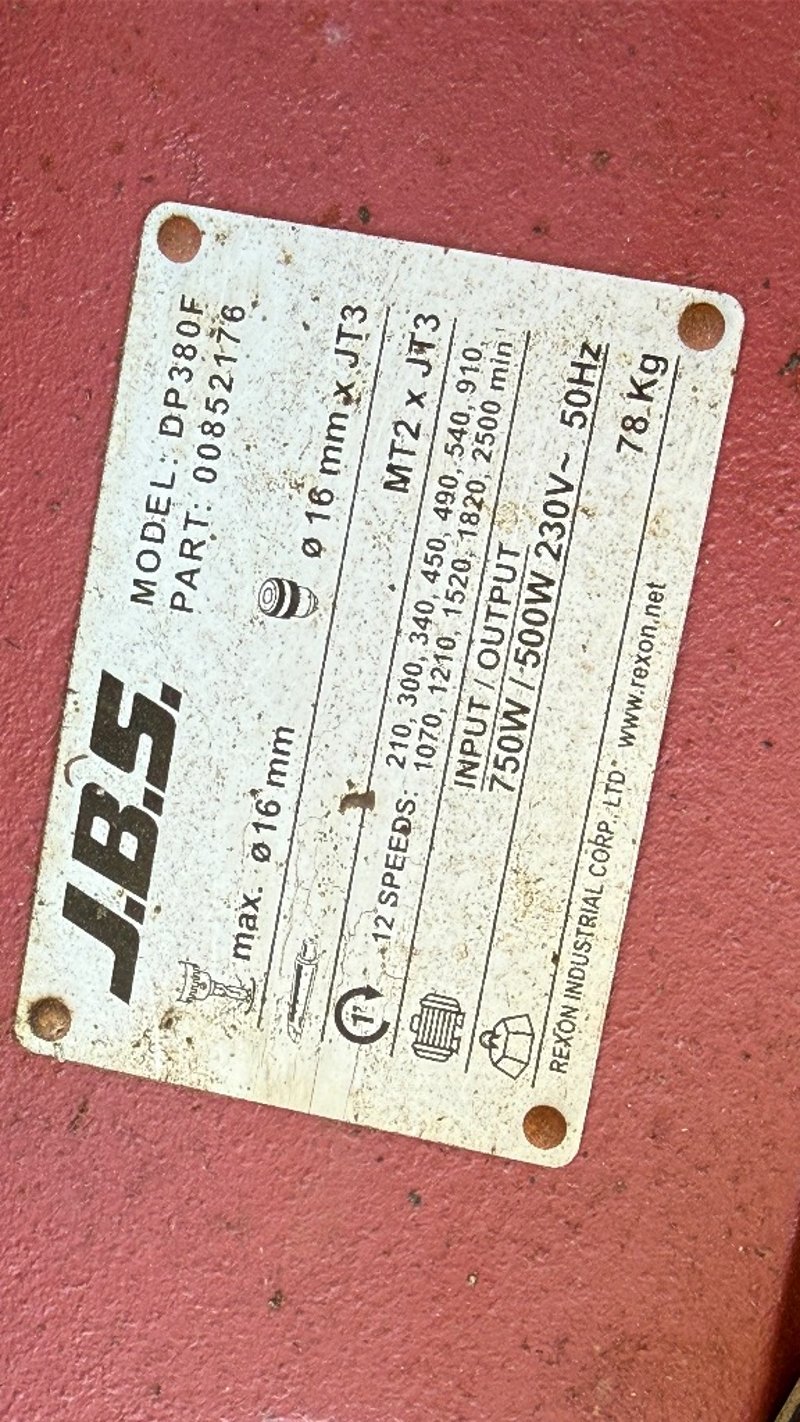 J.B.S. DP380F Heavy-Duty Floor Drill Press 750W 12-Speed MT2 16mm