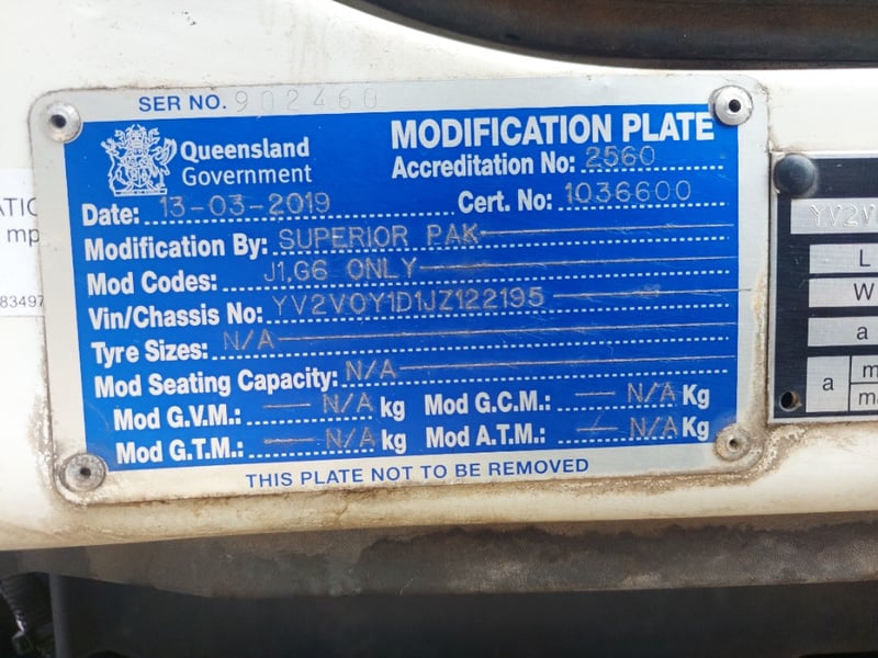 2018 Volvo FE chassis Year: 2018 Make: Volvo Model: FE Body: Garbage Configuration: 6x4 Seats: 2 Odometer Indicated: 120,000KM Transmission: Automatic Engine: Volvo Engine Number: (as per PPSR) Unsighted VIN: YV2V0Y1D1JZ122195 Tray / Body Size: Garbage Truck Note: Engine Tilt cab requires tools to tilt, no access, Garbage controls Untested. INSPECTION IS HIGHLY ADVISED GVM: 26000KG GCM: 10500KG Key#CTM1 #CTM
