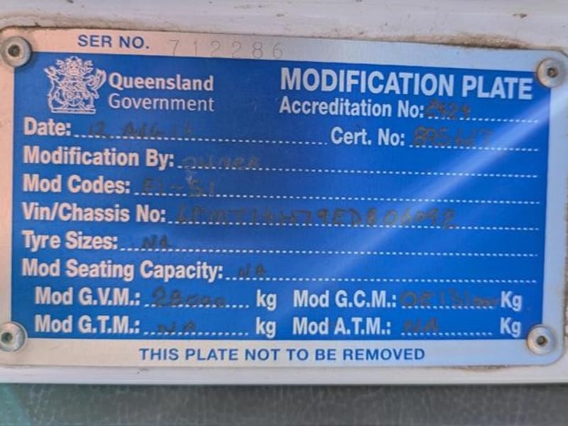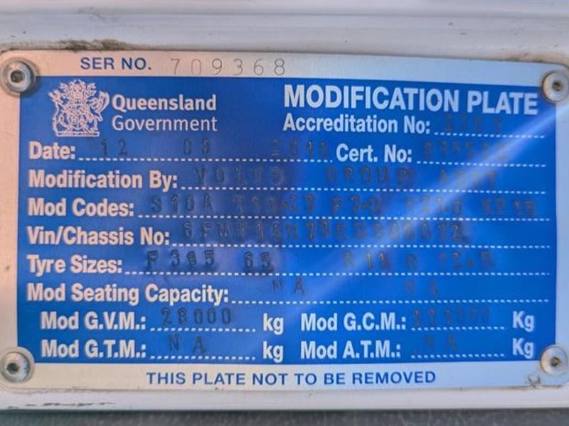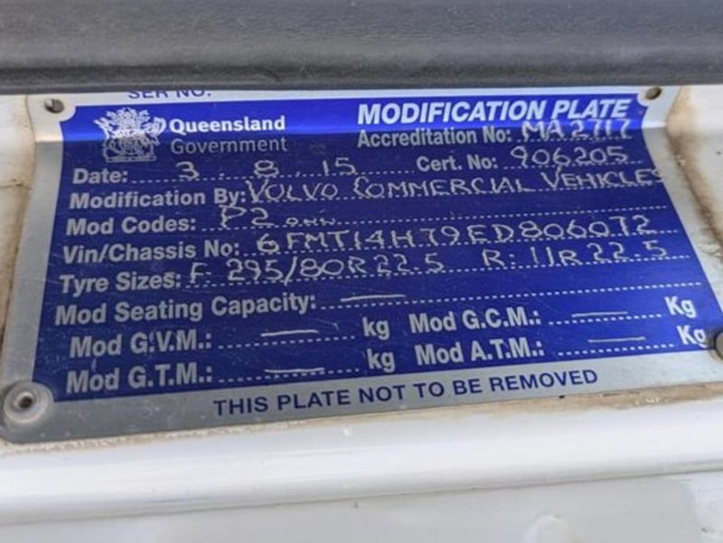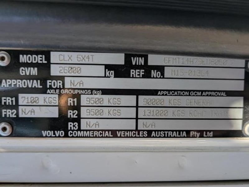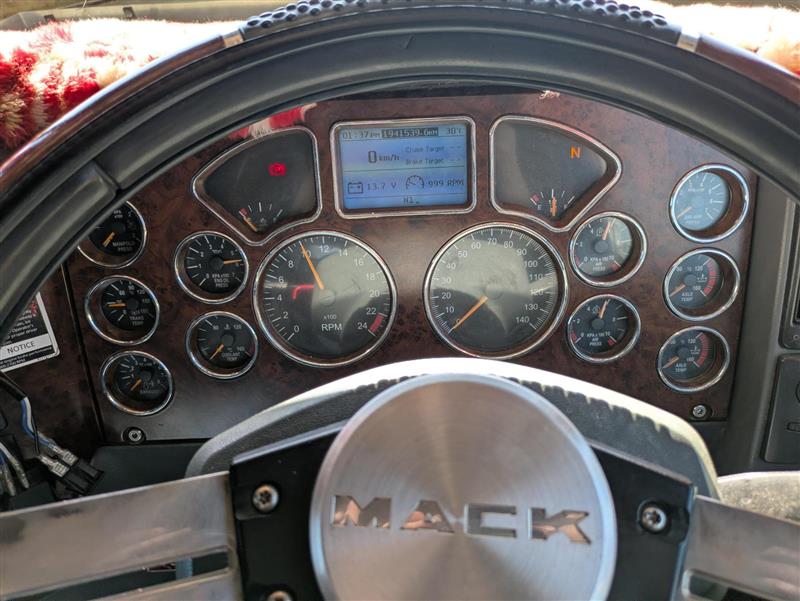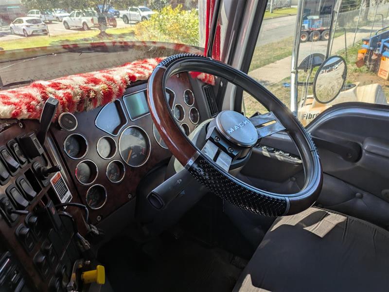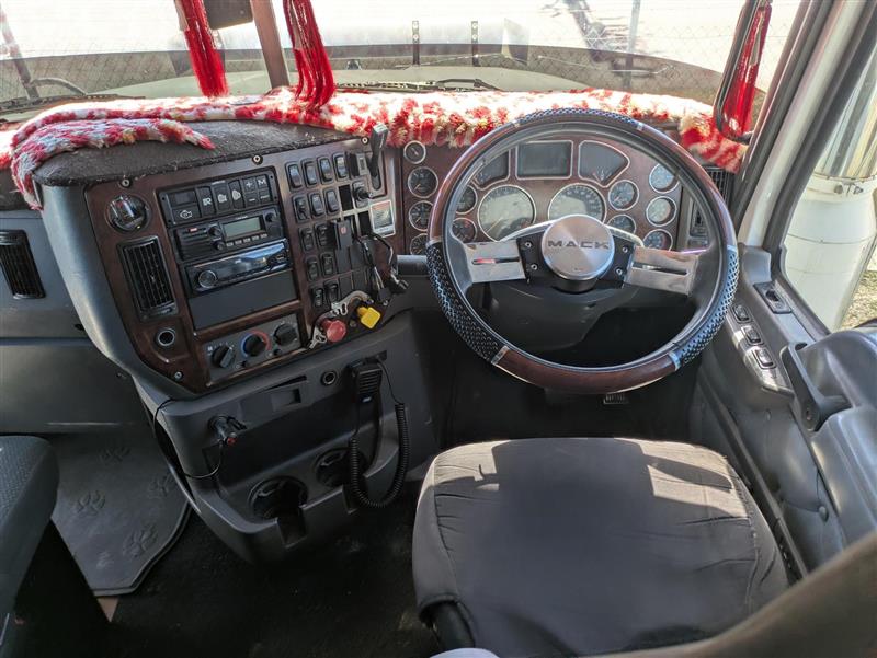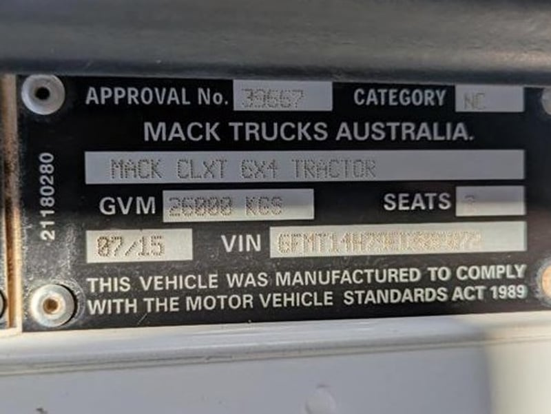 2015 Mack Trident 685 CLX 6x4T Superliner Year: 2015Make: MackModel Name & Number: Trident CLX 6x4T SuperlinerConfiguration: 6x4 Prime MoverBody: Sleeper CabEngine Details: Mack MP10-685 16.1L 6 CylTransmission: AutomaticOdometer Indicated: 1,941,539kmsFuel Capacity: 2 x 400L Diesel Tanks (800L Total Capacity)Colour: White with Blue Fuel Tanks and DecalsSuspension: Airbag SuspensionEngine Number: MP10130045 AS PER PPSRV.I.N.: 6FMT14H79ED806072GVM: 28,000 kgsGCM: 131,000 kgsBattery Isolator, Bullbar, Spotlights, UHF Radio, Twin Exhausts, Sleeper with Mattress, Overhead Storage Lockers, Microwave, TV, Cabin Fan, and Custom Upholstered Roof Trim with Tassel Finish.Comments / Condition:Presents well for age with clean, comfortable interior. Both exhaust stacks show heat cracking and corrosion as pictured. Horn is not working. Only 1 Key Available. Sizeable crack on the drivers side of the windshield. - Motor Dealer Licence # MD27332Key #B2