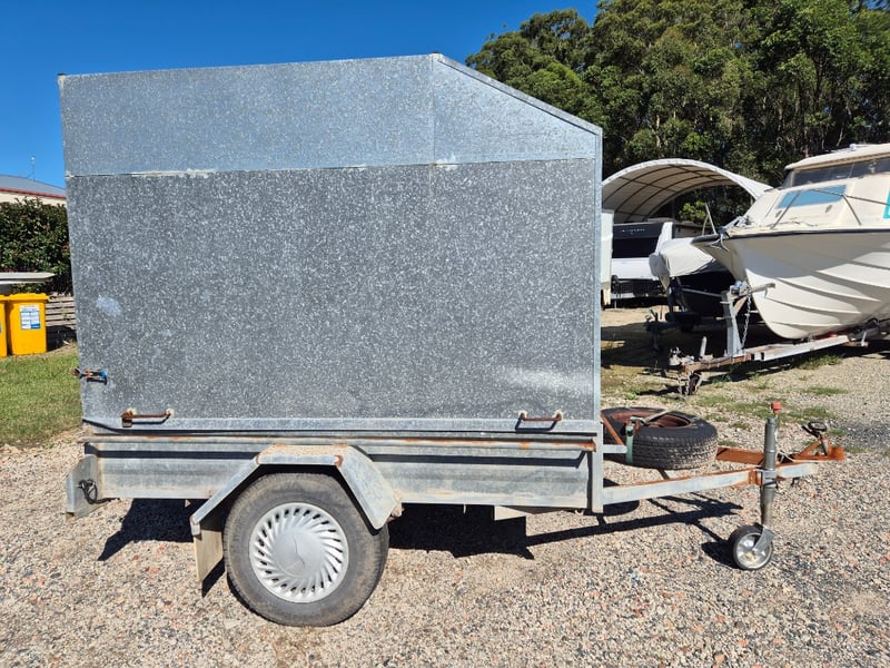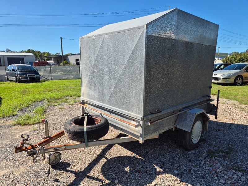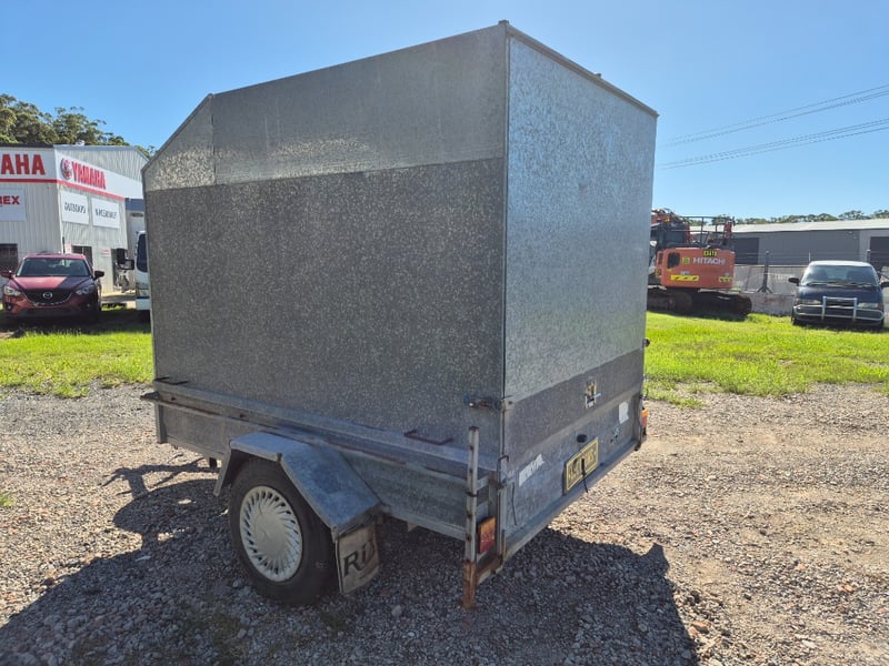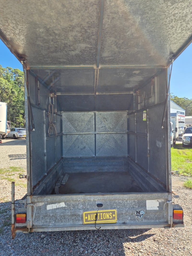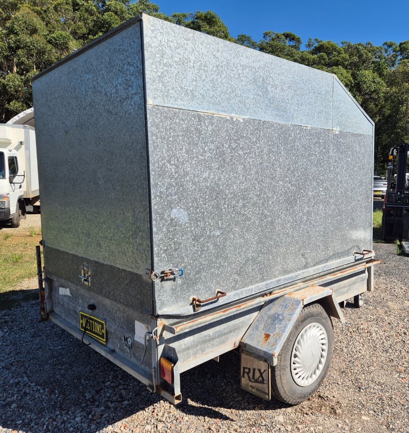 1991 Pantech Side Box Trailer with Hydraulic Opening Door Year: 1991 Make: Rix Trailers Model: Body: Box Trailer Style Colour: Galvanised Configuration: Single Axle Suspension: Leaf Description: Pantech Side, Hydraulic lift for Rear Door, Chassis No.: 6B9T20000M2BG7093 GTM: 750Kgs Tare: 280Kgs Total length: 3.4m SOLD UNREGISTERED
