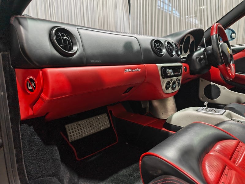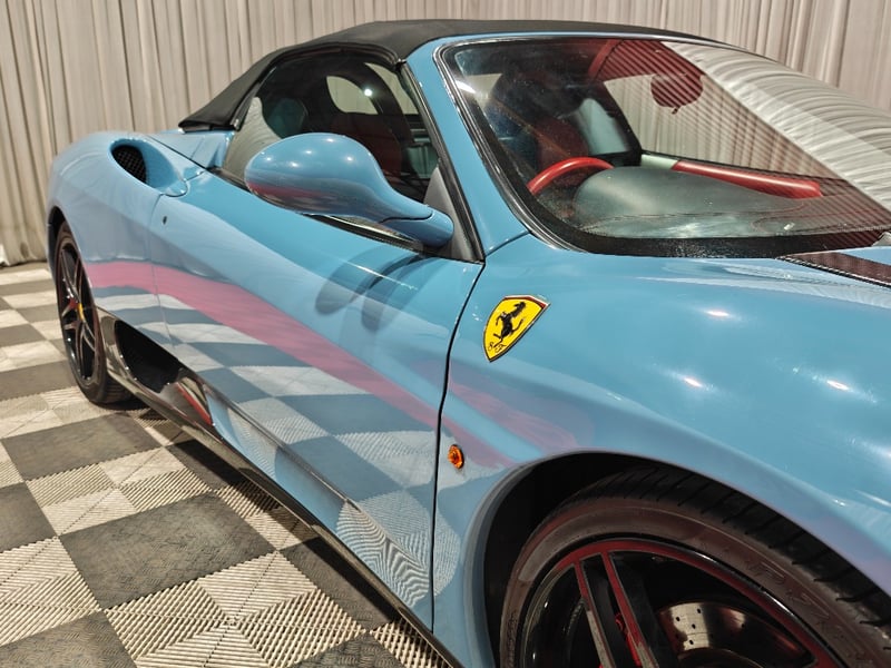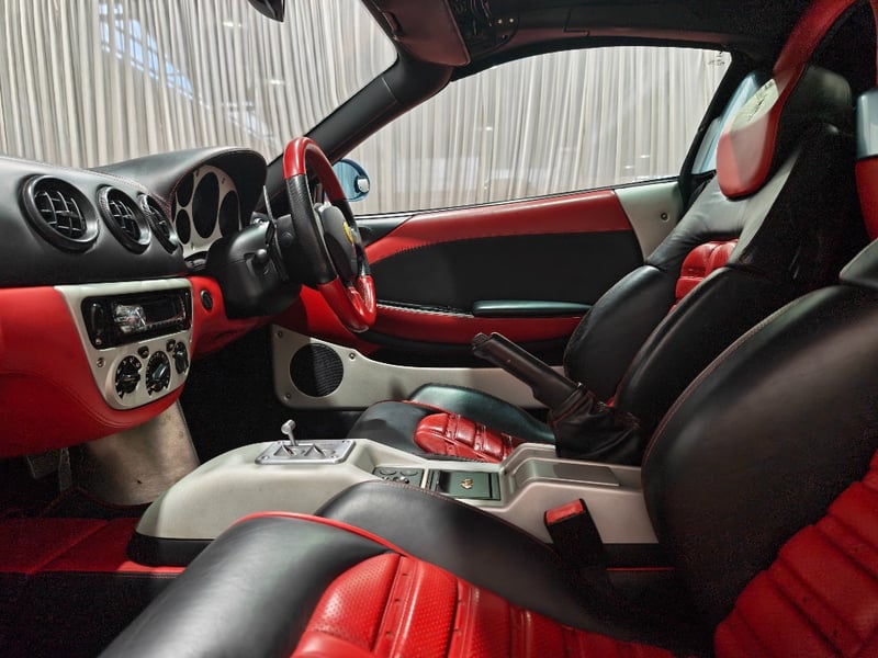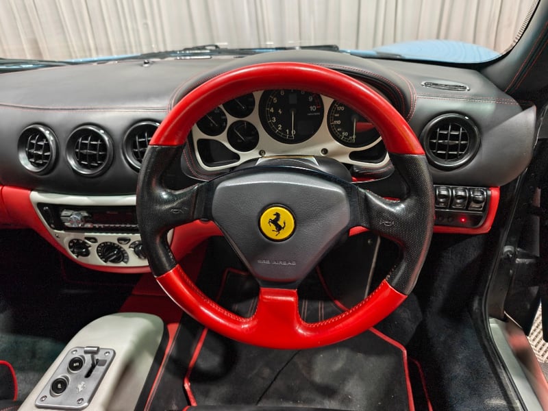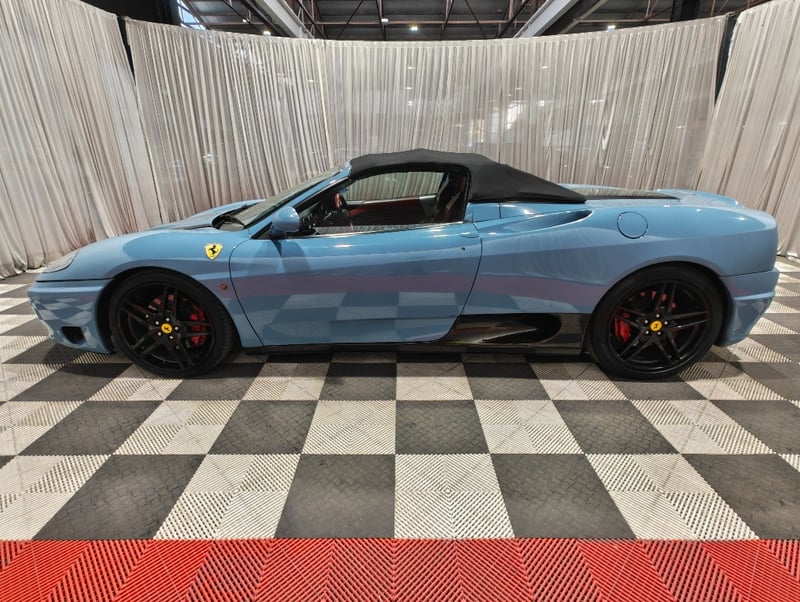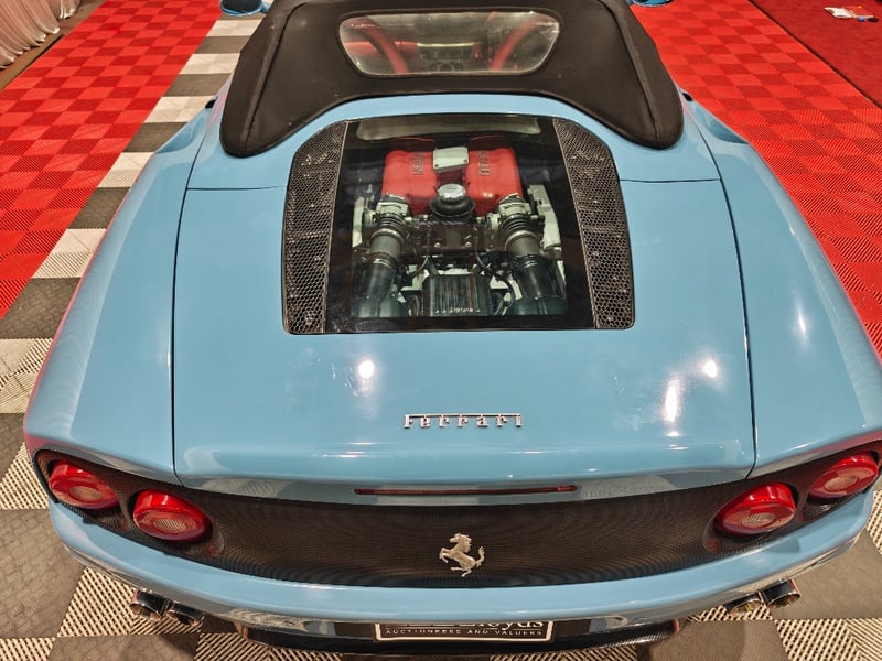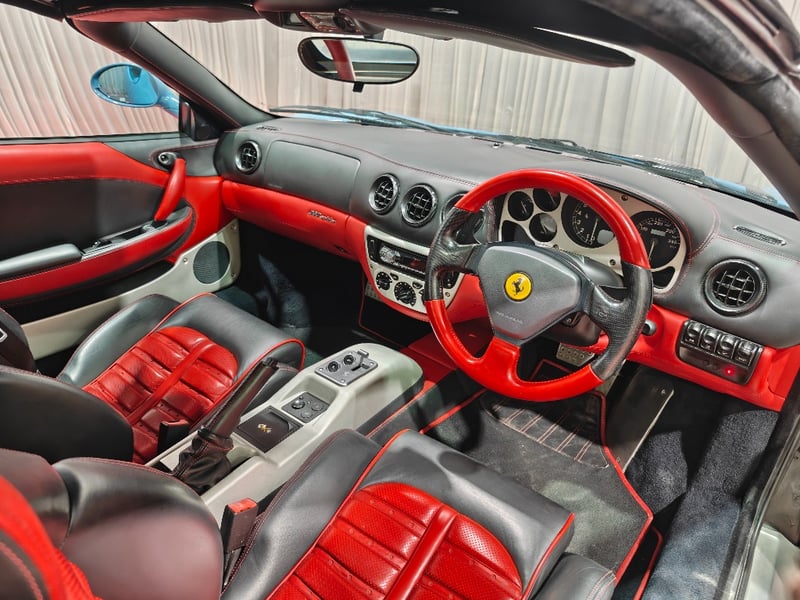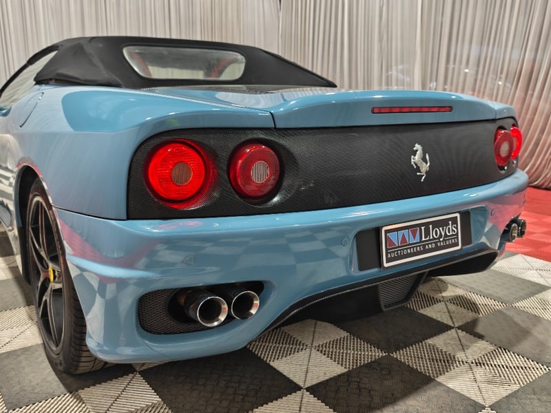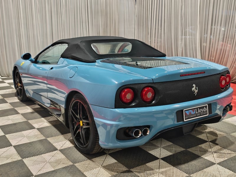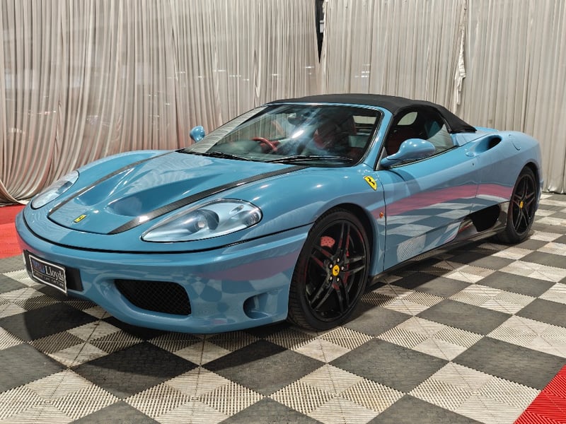 This exceptional Ferrari 360 Spider represents the pinnacle of early 2000s convertible sports car engineering. Finished in striking Azzurro Barchetta light blue with contrasting red leather interior, this 3.6-litre naturally aspirated V8-powered icon delivers authentic Italian sports car performance. The 6-speed manual transmission provides engaging mechanical connection, whilst the mid-mounted engine ensures perfect weight distribution. With approximately 52,345 kilometres on the odometer, this well-maintained example showcases the timeless design language that defined an era. The black canvas convertible top, carbon fibre trim elements, and iconic Ferrari red Brembo brakes exemplify the attention to detail throughout. Assembly number 39264 confirms originality, with matching engine and chassis documentation. The supple leather cabin, leather-rimmed steering wheel, and bespoke sports seats create an intimate driving environment. This 360 Spider represents a significant chapter in Ferrari's history, combining visceral naturally aspirated performance with open-air driving pleasure that modern turbocharged variants cannot replicate. Vehicle Includes Keys & Owners Manuel. Inspection Recommended.
