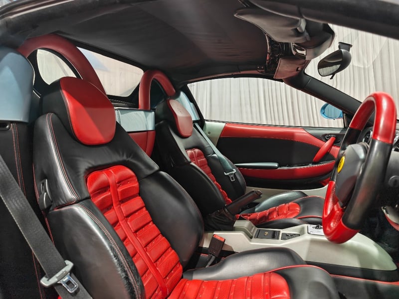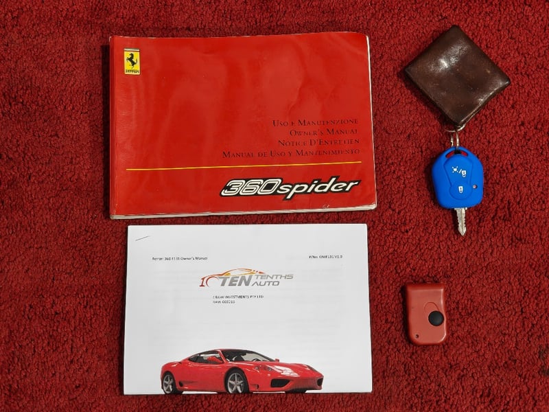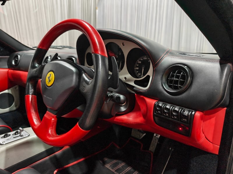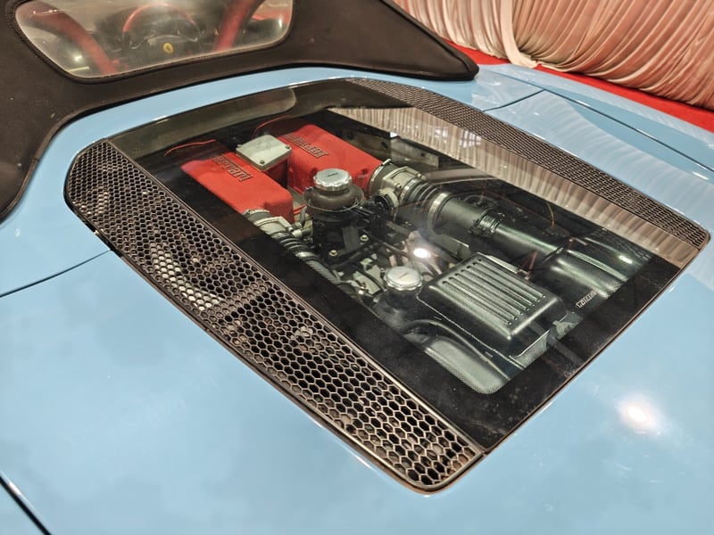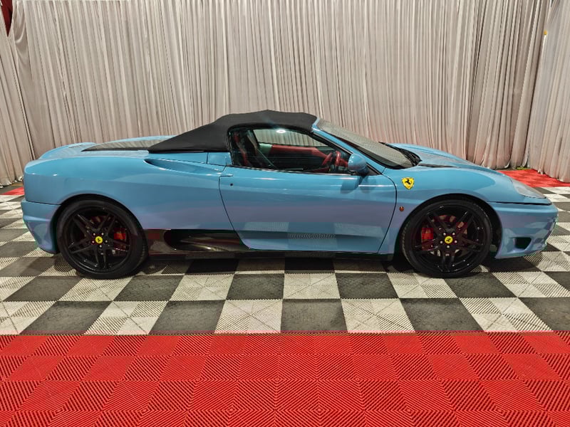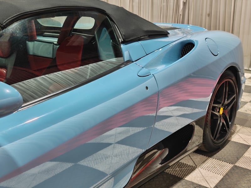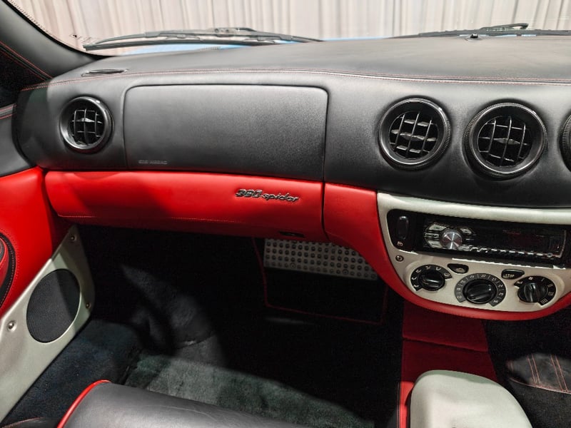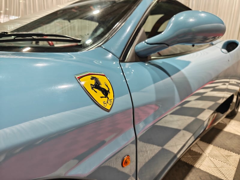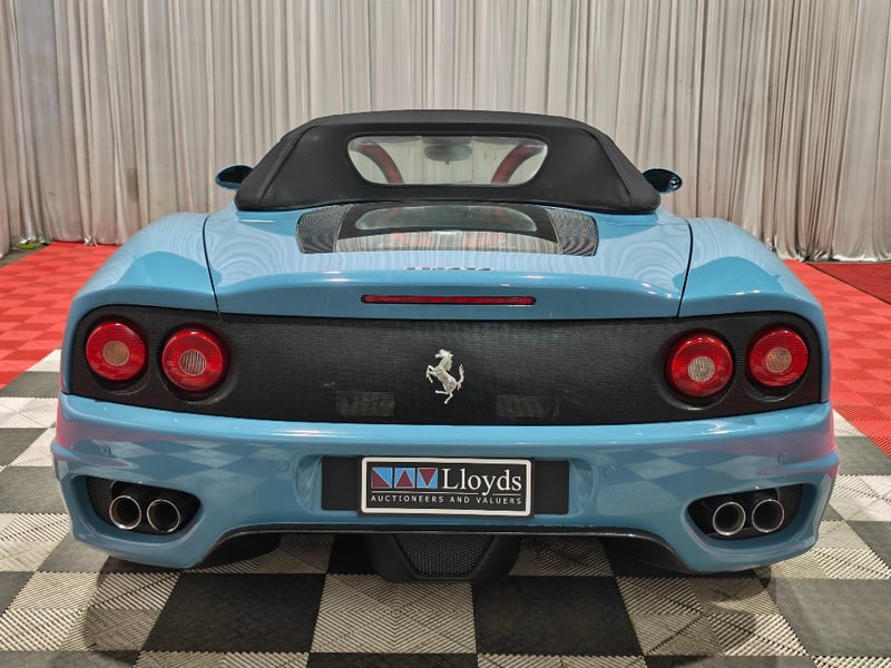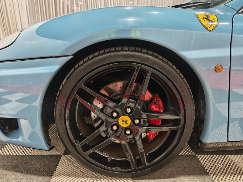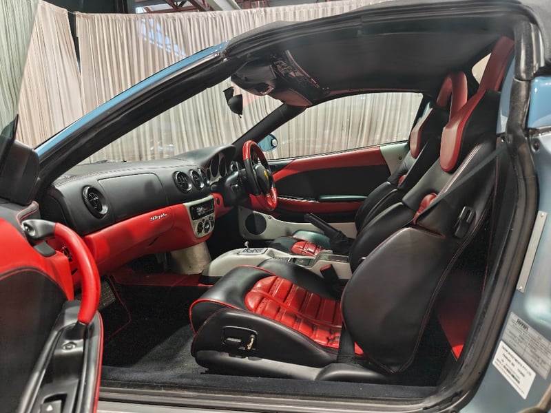 This exceptional Ferrari 360 Spider represents the pinnacle of early 2000s convertible sports car engineering. Finished in striking Azzurro Barchetta light blue with contrasting red leather interior, this 3.6-litre naturally aspirated V8-powered icon delivers authentic Italian sports car performance. The 6-speed manual transmission provides engaging mechanical connection, whilst the mid-mounted engine ensures perfect weight distribution. With approximately 52,345 kilometres on the odometer, this well-maintained example showcases the timeless design language that defined an era. The black canvas convertible top, carbon fibre trim elements, and iconic Ferrari red Brembo brakes exemplify the attention to detail throughout. Assembly number 39264 confirms originality, with matching engine and chassis documentation. The supple leather cabin, leather-rimmed steering wheel, and bespoke sports seats create an intimate driving environment. This 360 Spider represents a significant chapter in Ferrari's history, combining visceral naturally aspirated performance with open-air driving pleasure that modern turbocharged variants cannot replicate. Vehicle Includes Keys & Owners Manuel. Inspection Recommended.
