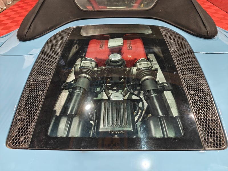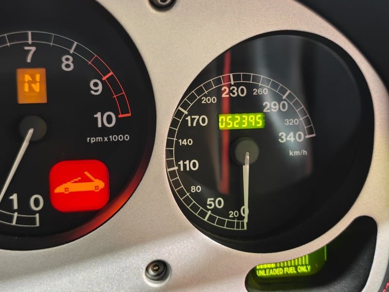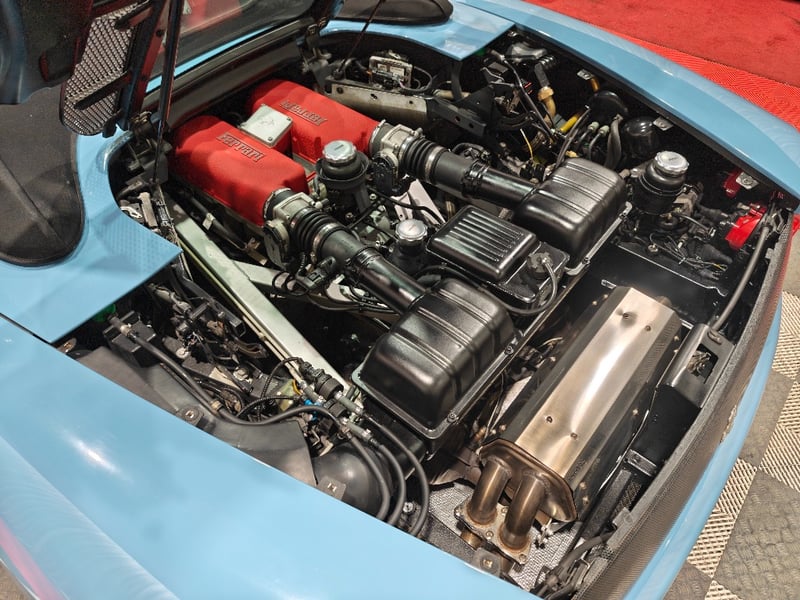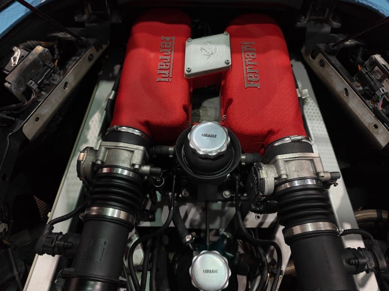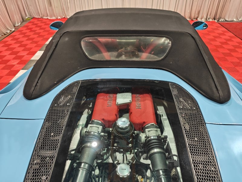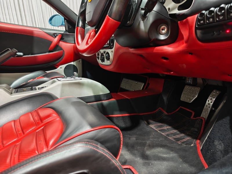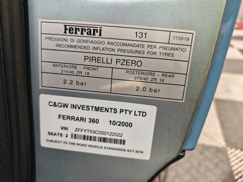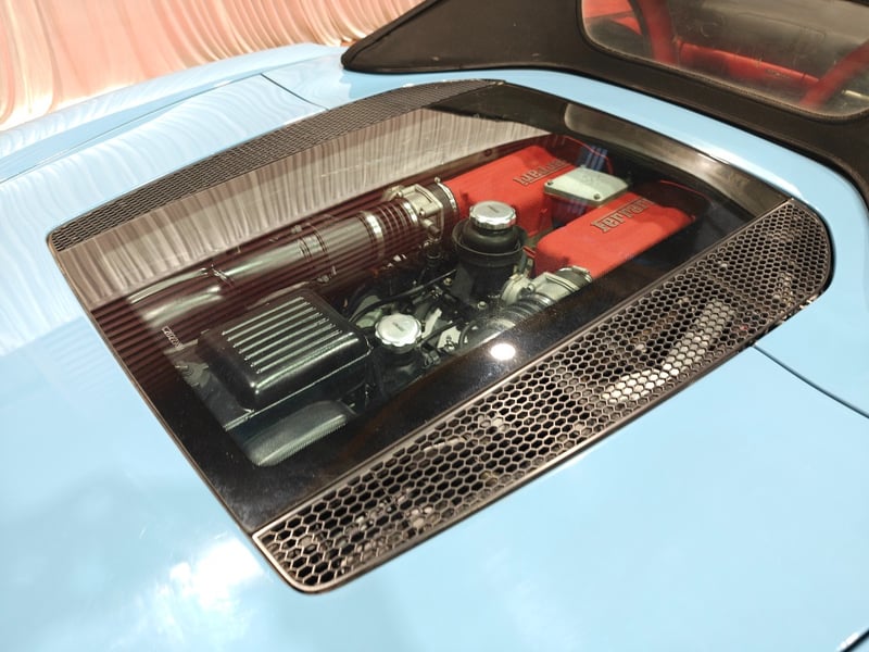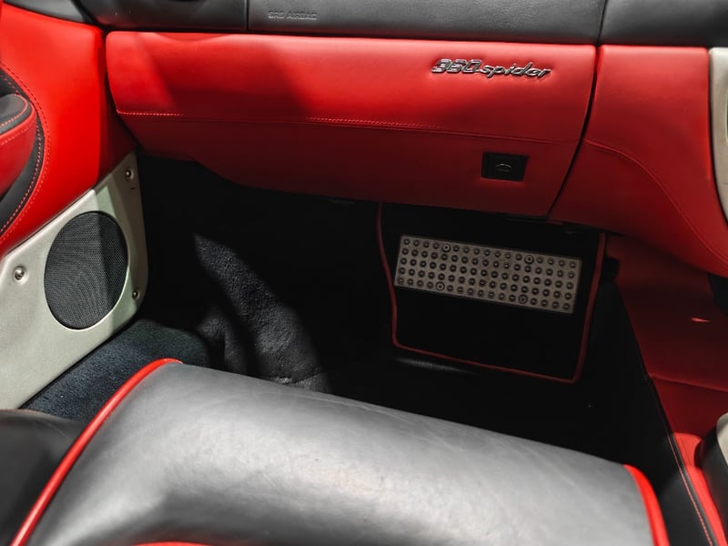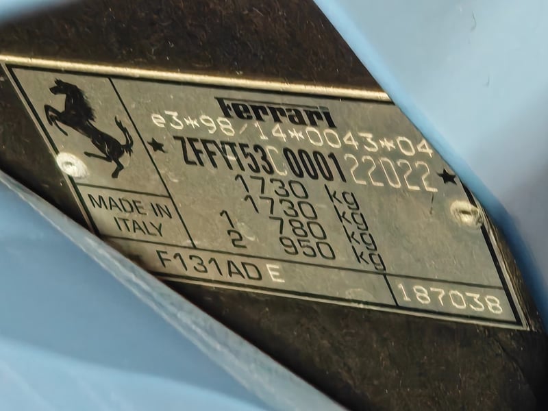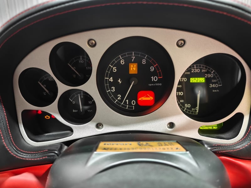 This exceptional Ferrari 360 Spider represents the pinnacle of early 2000s convertible sports car engineering. Finished in striking Azzurro Barchetta light blue with contrasting red leather interior, this 3.6-litre naturally aspirated V8-powered icon delivers authentic Italian sports car performance. The 6-speed manual transmission provides engaging mechanical connection, whilst the mid-mounted engine ensures perfect weight distribution. With approximately 52,345 kilometres on the odometer, this well-maintained example showcases the timeless design language that defined an era. The black canvas convertible top, carbon fibre trim elements, and iconic Ferrari red Brembo brakes exemplify the attention to detail throughout. Assembly number 39264 confirms originality, with matching engine and chassis documentation. The supple leather cabin, leather-rimmed steering wheel, and bespoke sports seats create an intimate driving environment. This 360 Spider represents a significant chapter in Ferrari's history, combining visceral naturally aspirated performance with open-air driving pleasure that modern turbocharged variants cannot replicate. Vehicle Includes Keys & Owners Manuel. Inspection Recommended.