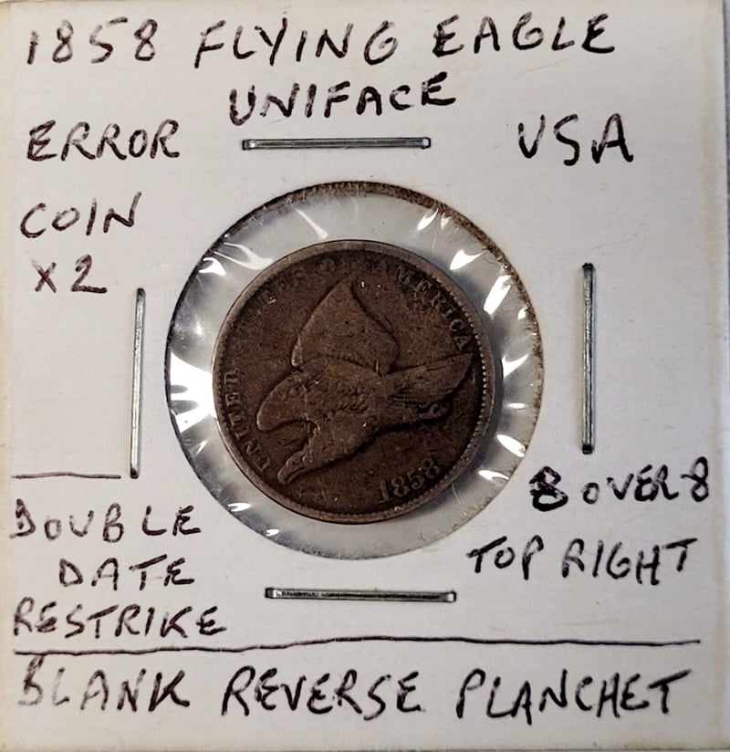 1858 FLYING EAGLES PENNY " UNIFACE " ERROR COIN - USANumbed " 5 " List Of 25 Most Valuable Us Penny'S Cv Up To Us $10,000 ( Without Error )488274+22