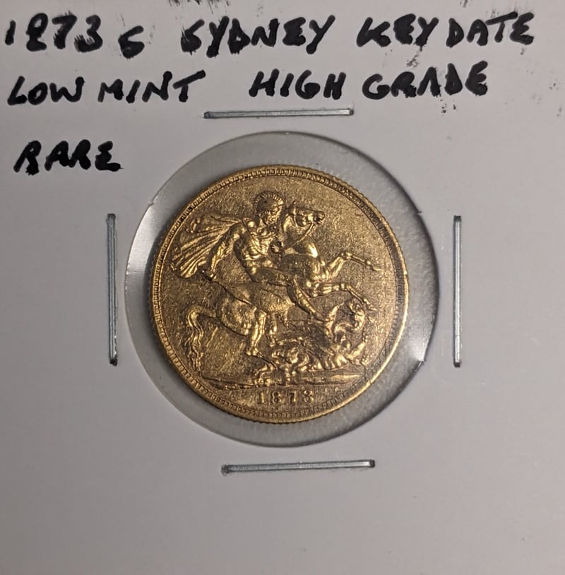 1873S SYDNEY SOVEREIGN KEYDATE HIGH GRADEProvenance: Qv/St George, Low Mintage (Rare In High Grade)488274+94