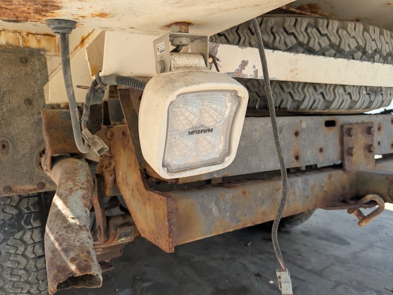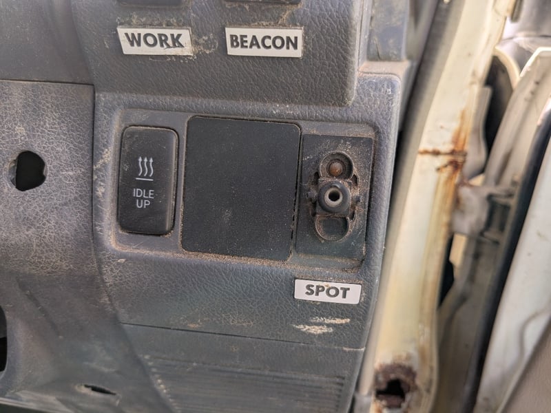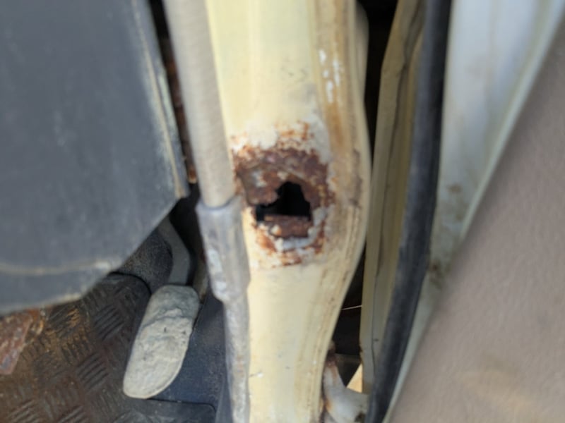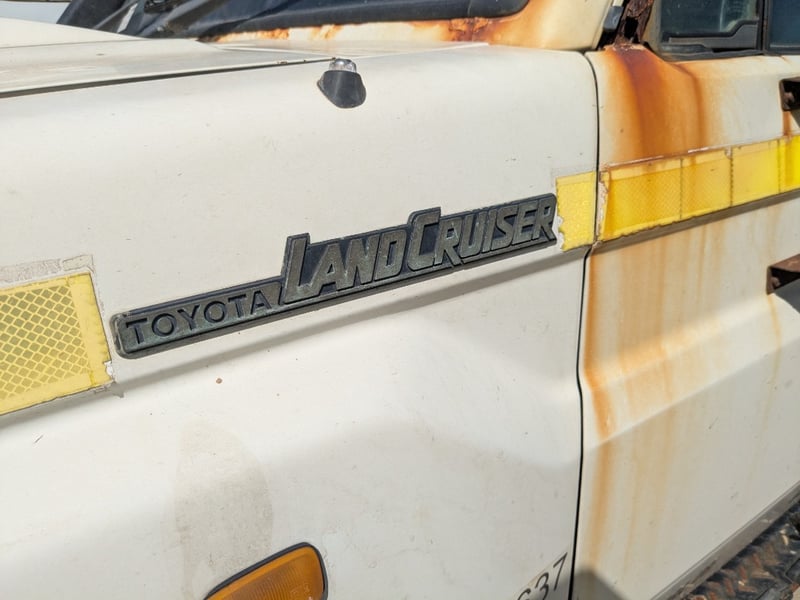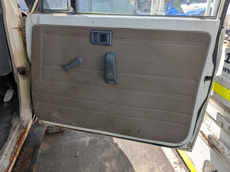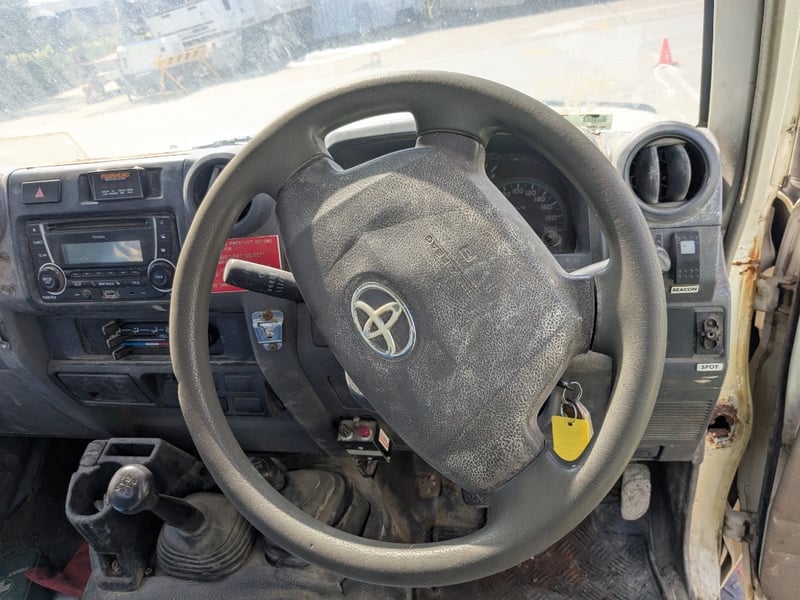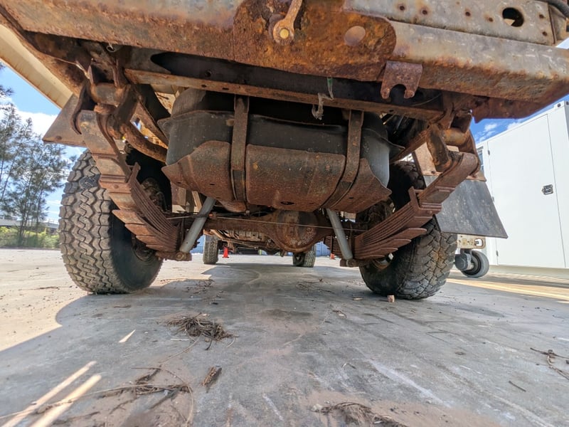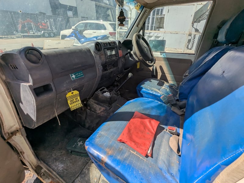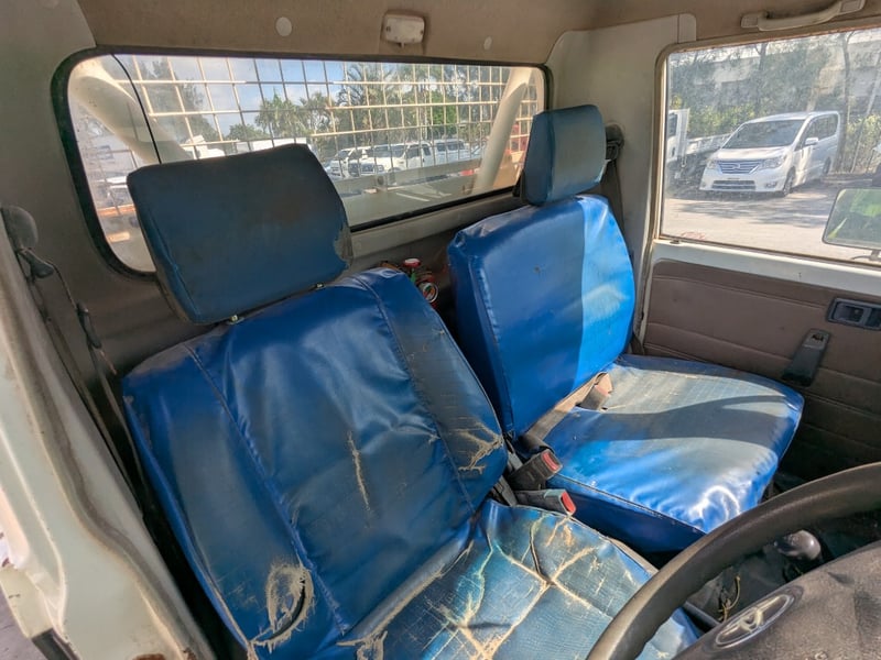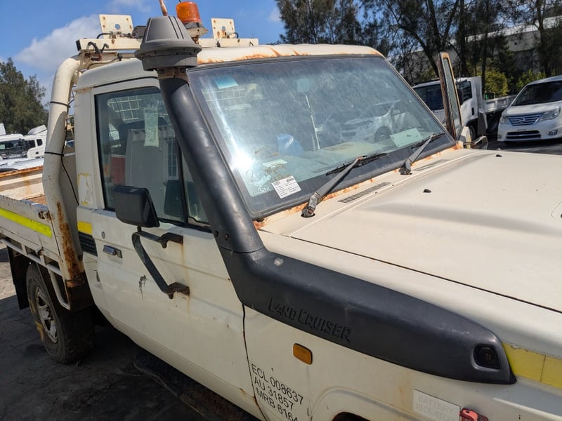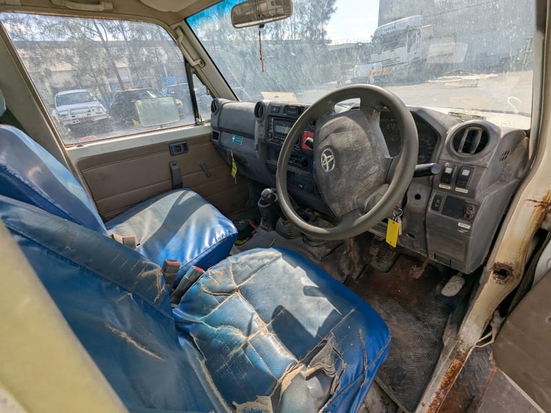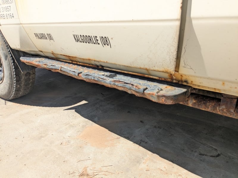Manual seat adjustability, 2 back work lights, sidesteps, spare tyre, Snorkel, major rust evident, tyre flat, unknown if it runs, battery isolator switch seized, marks scratches & dints, holes due to rust, interior major wear & tear,.