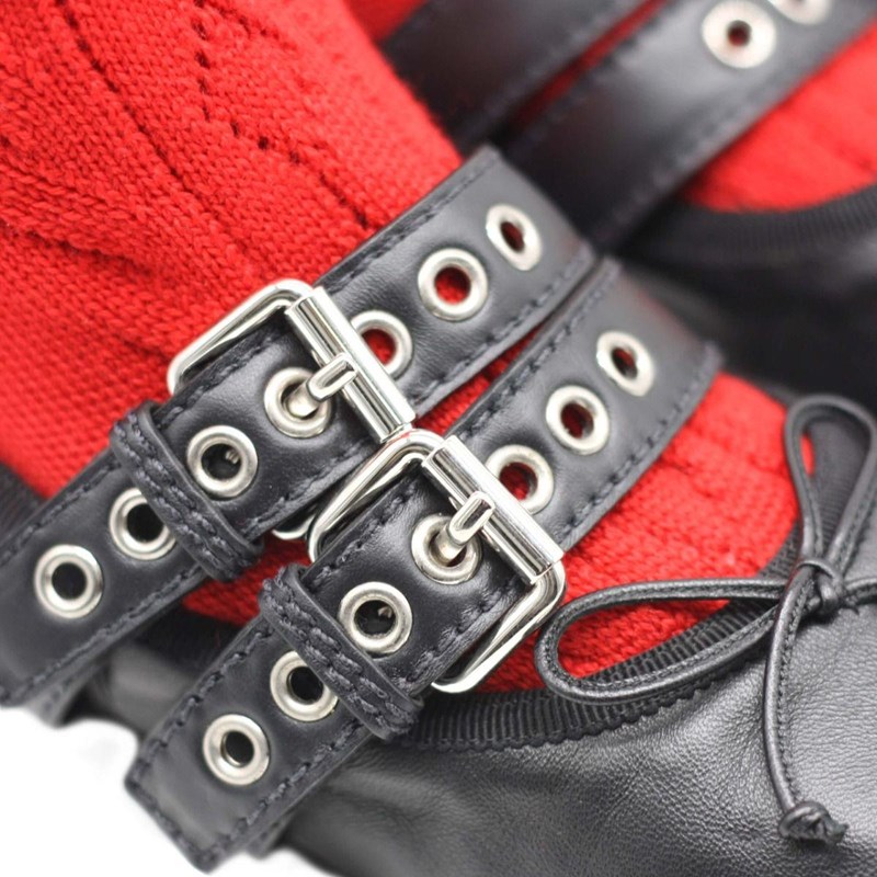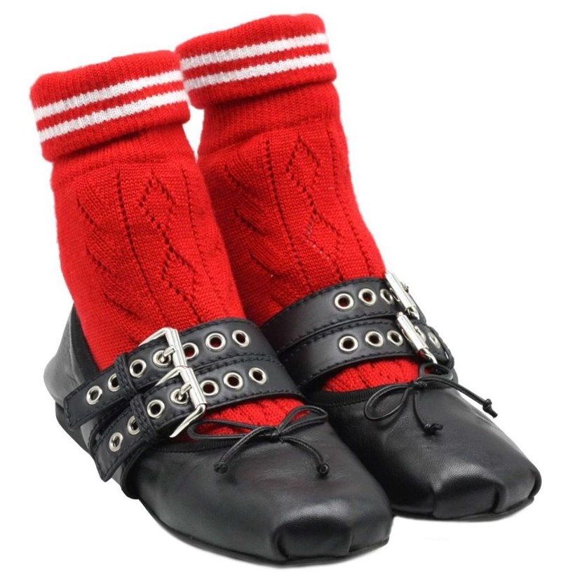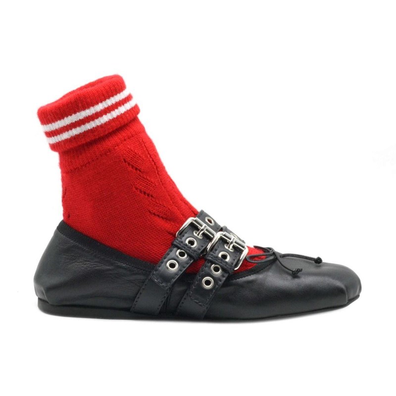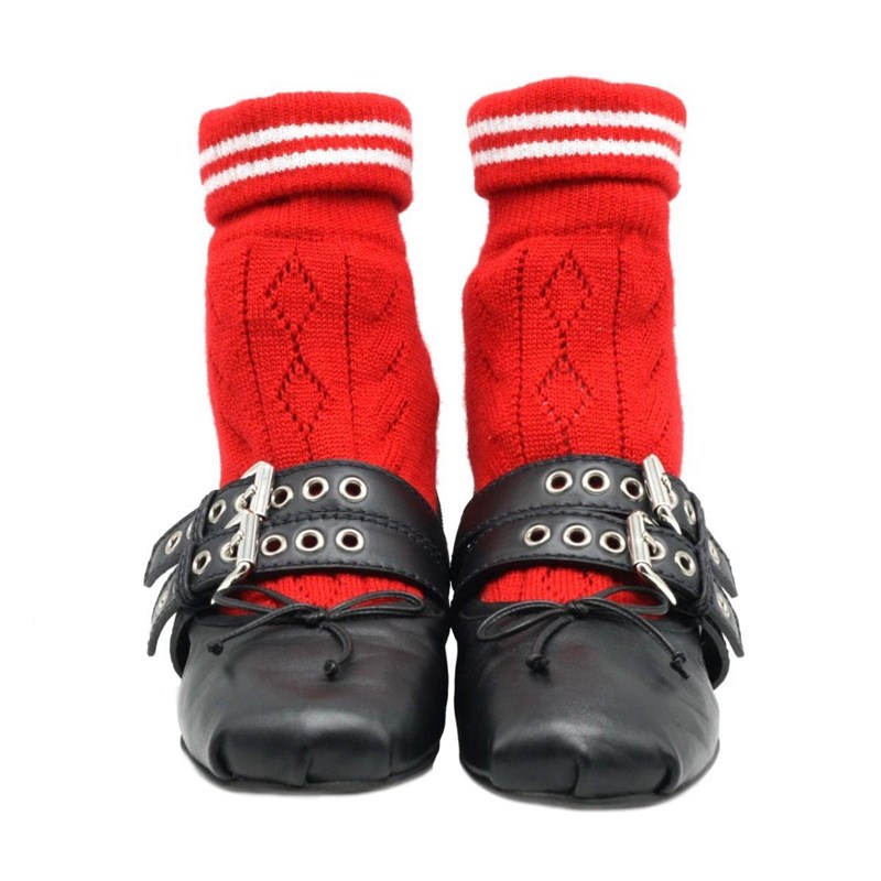 MIU MIU RED SOCK BUCKLED BALLERINA FLATS SIZE 38