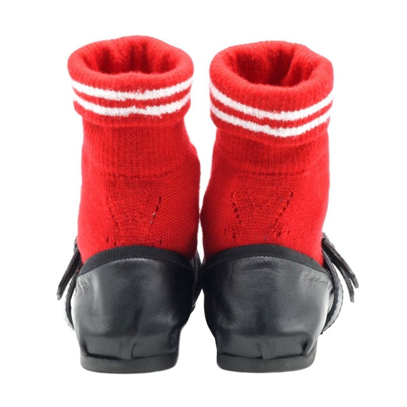 Red cable-knit wool sock-style insert featuring off-white stripes.