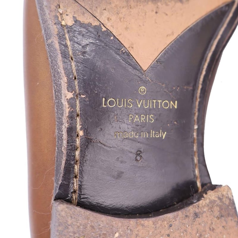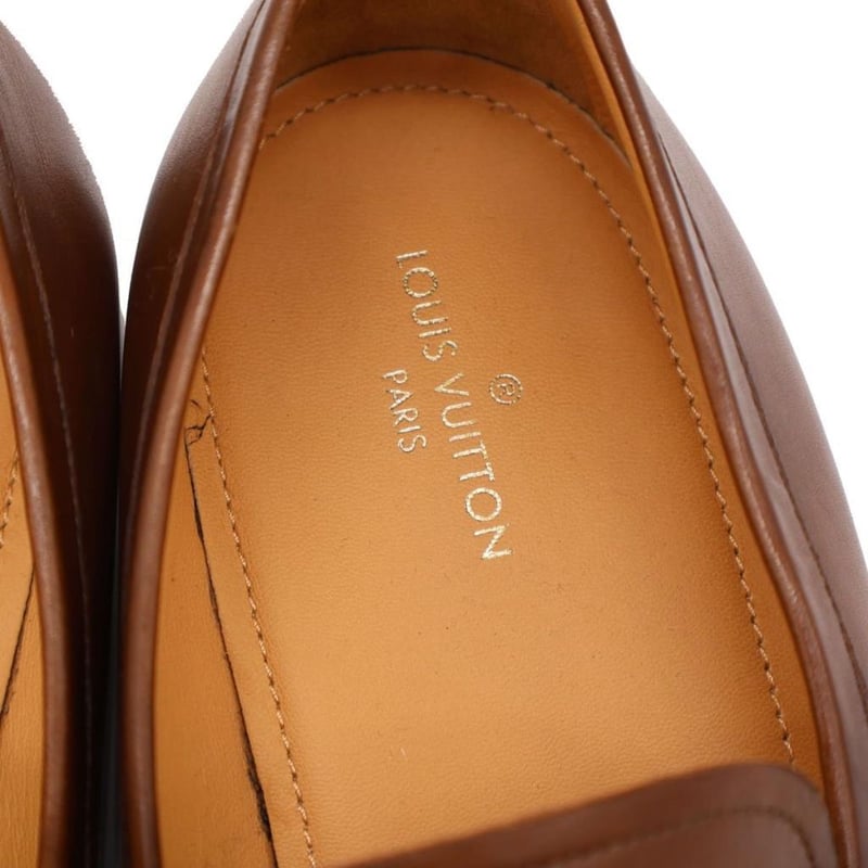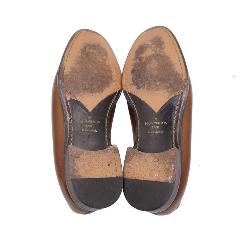LOUIS VUITTON BROWN LEATHER SAINT GERMAIN LOAFERS SIZE 8 Size: 8 Material Leather with gold-tone hardware. Additional Condition Report - Visible sign of wear and tears on exterior - Visible wear and scuffs on soles Comes With - Certificate of Authenticity CROSS DOCKED 162802+35