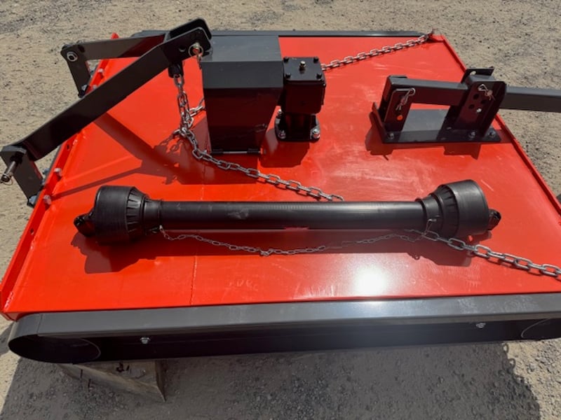 Unused 2025 KB140 Mower- Front and rear side chains - Cutting Width: 1360mm - Blade Quantity: 2 - Wheel Quantity: 1 - Working Method: Rotary - PTO Speed: 540r/min - Power: 40-60HP - Dimensions (L*W*H): 1543x1670x978mm - Weight: 280kg - PTO shaft included Location: Austral, Sydney NSW