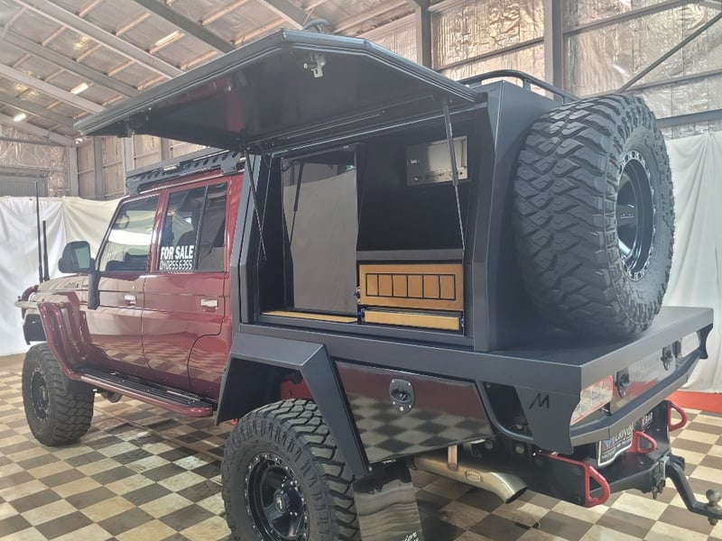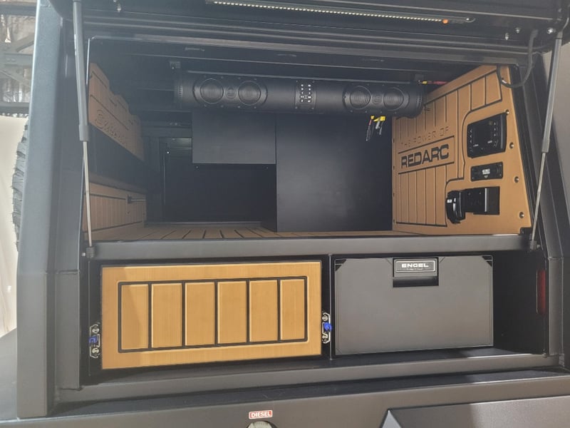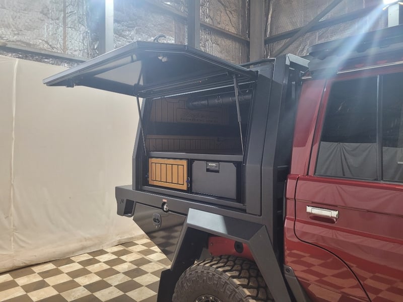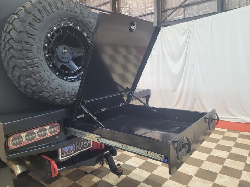 CUSTOM HARD TEXTURE BLACK CANOPY AND TRAY WITH WATER TANK DRAWS AND TABLES
