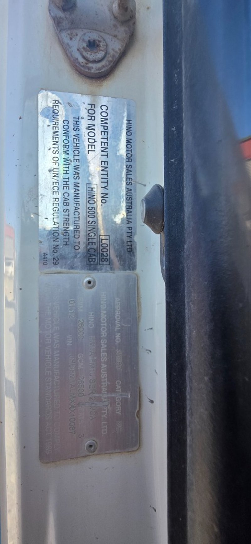 2012 Hino FM1J Series 2 500 C/CA Truck & Chasis "Ex Water Truck"