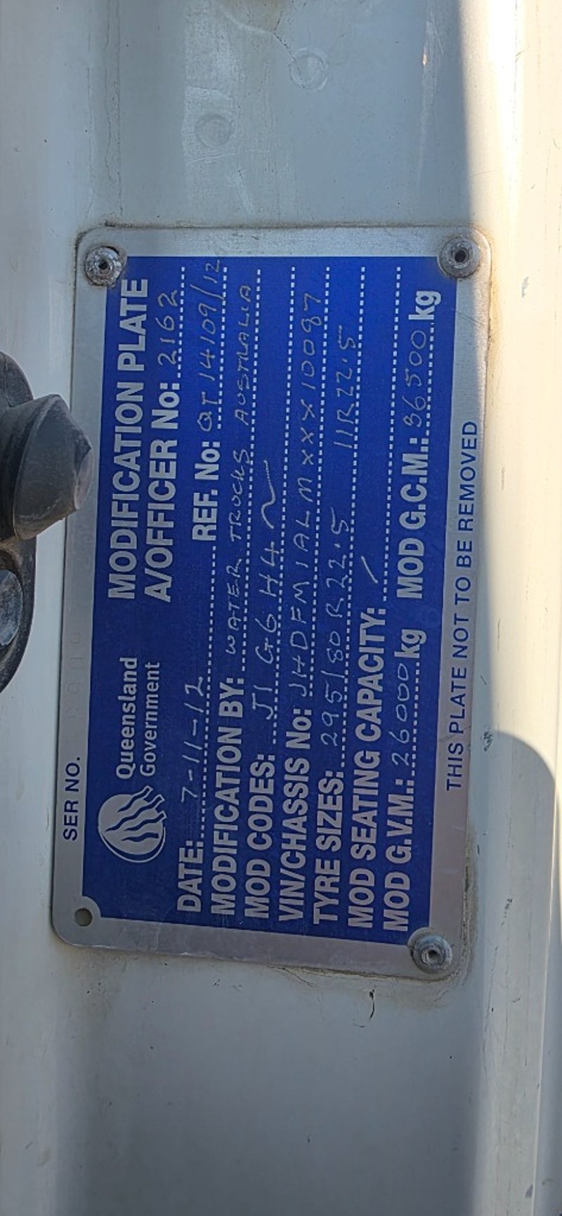 Description/Extras: Mod Plate: Codes J1, G6, H4. Isolation Switches. Ex Water Truck