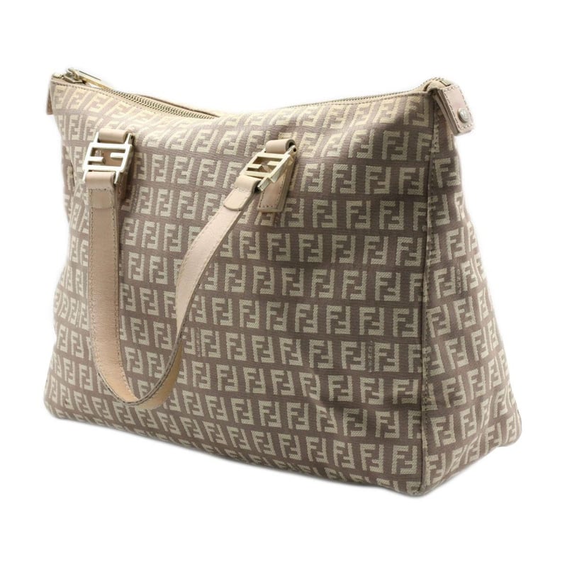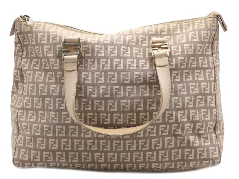 FENDI LIGHT PINK/BEIGE ZUCCHINO CANVAS AND LEATHER TOTE