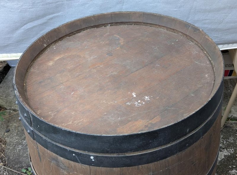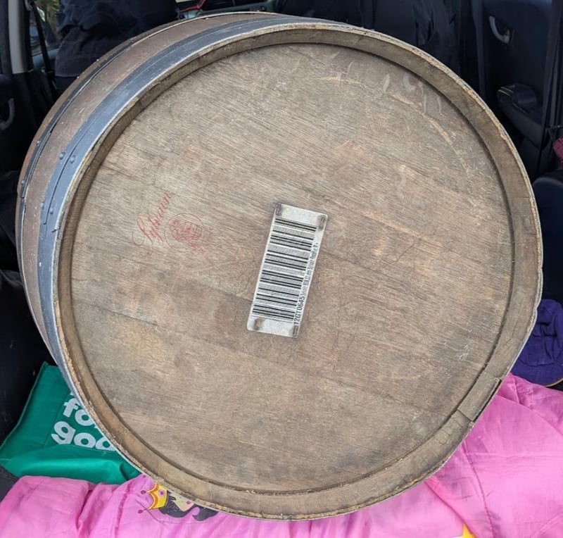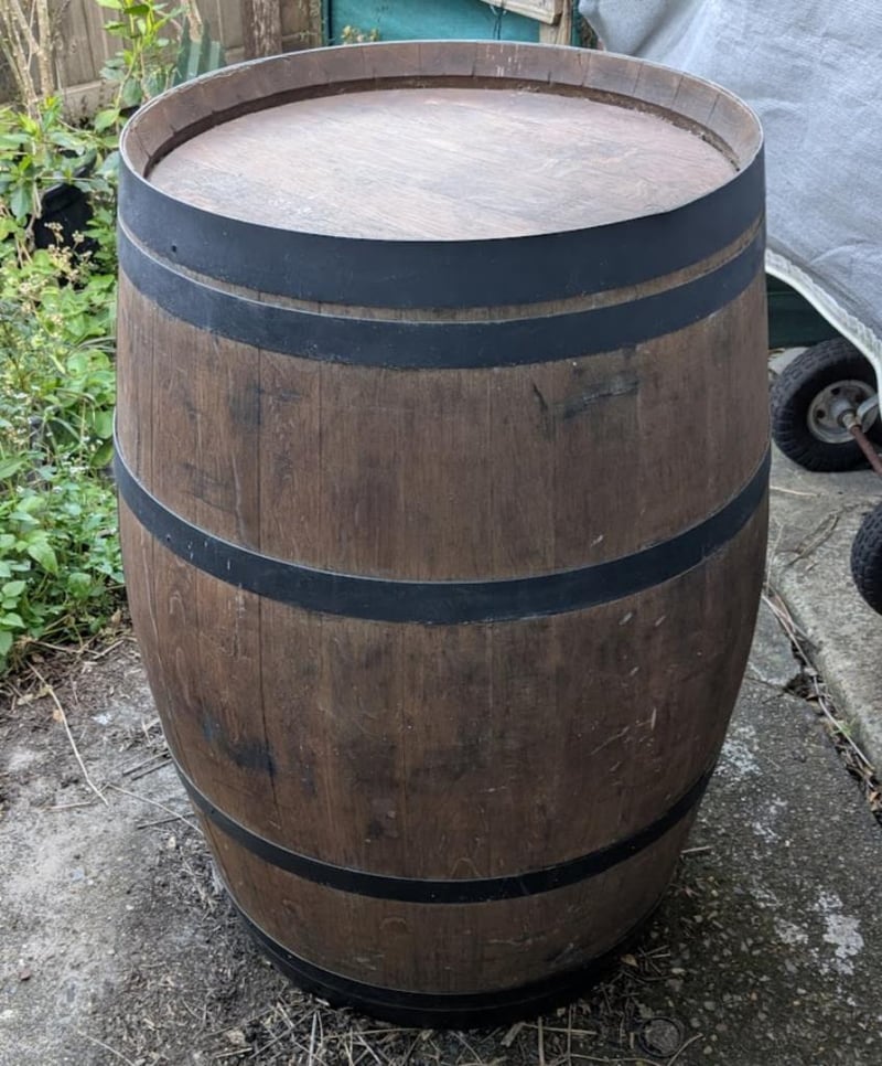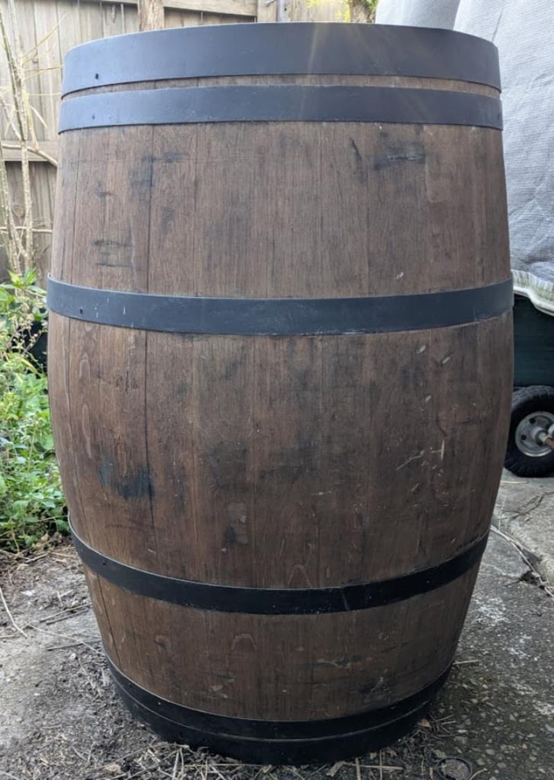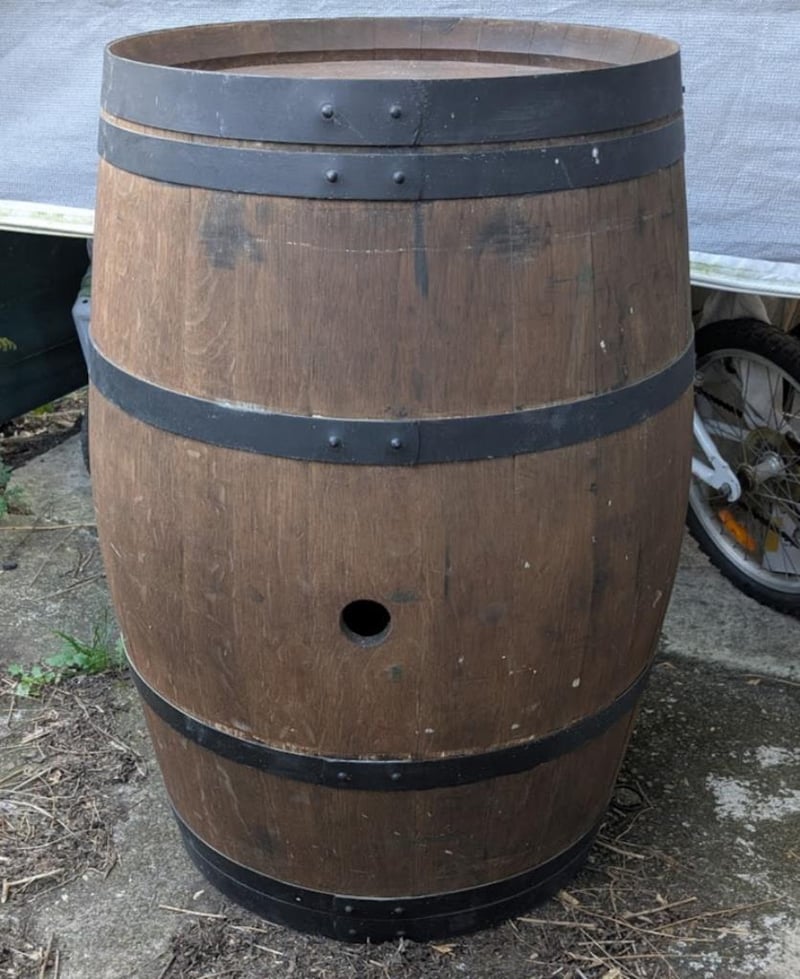 LARGE STANDING WINE OAK BARREL 50 GALLONS BY SYLVAIN FRANCE 93CMH X 60CMD (WIDEST)
