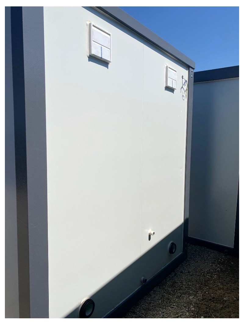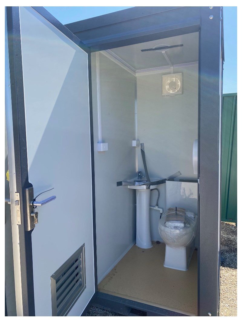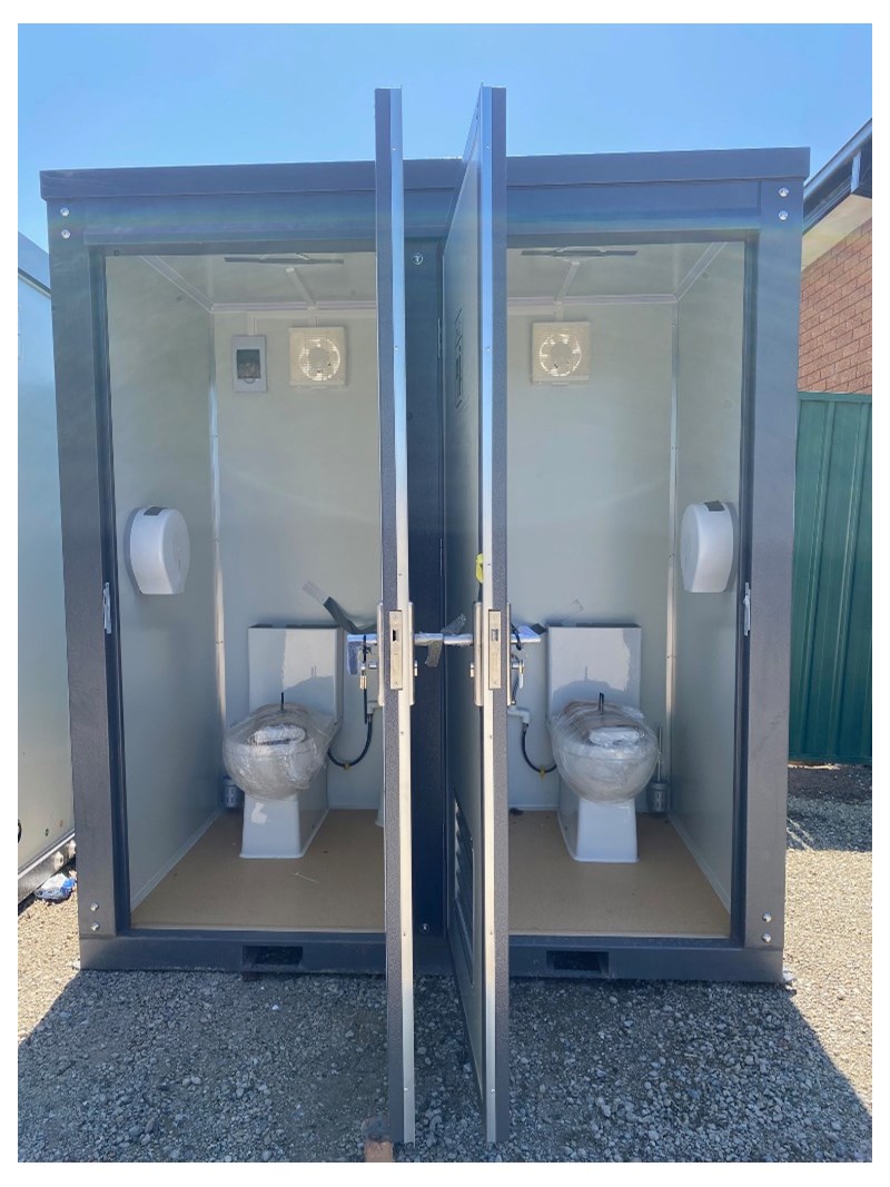 - Unit can be connected to Mains Power, Sewerage and Water Manufacture and Fittings: • Shipping container style structure with insulated sides and roof
