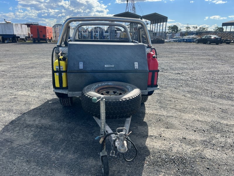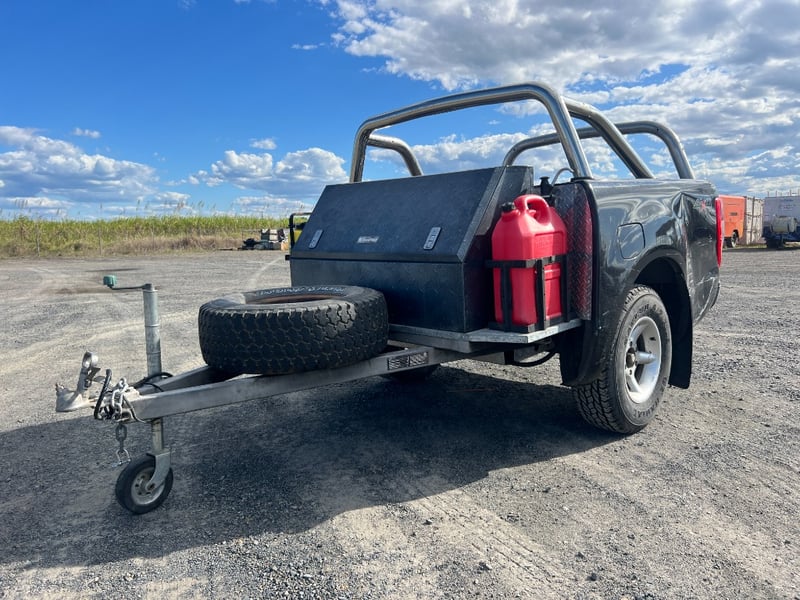 Stainless Steel sports bars, 2 x 20L Fuel Canisters, Tool Box, Spare Tyre, Tub Liner, 12v socket in the trailer, Jockey Wheel, Anderson plug, 7 Pin flat Trailer socket.