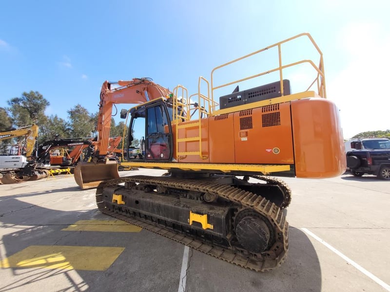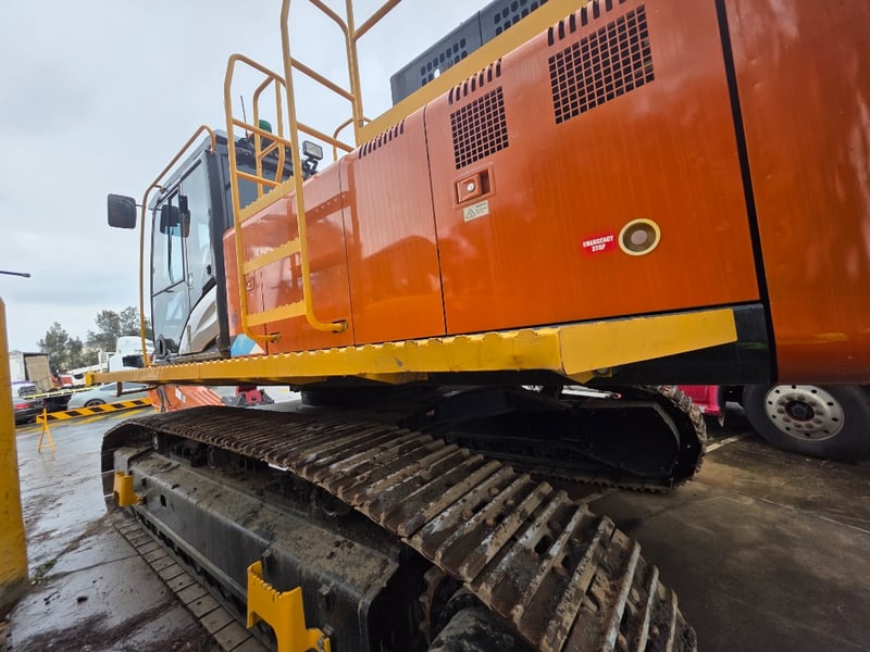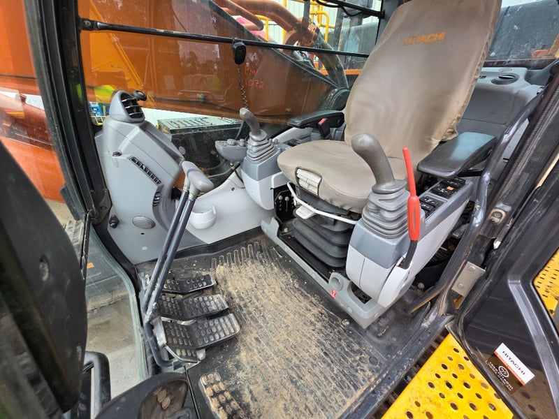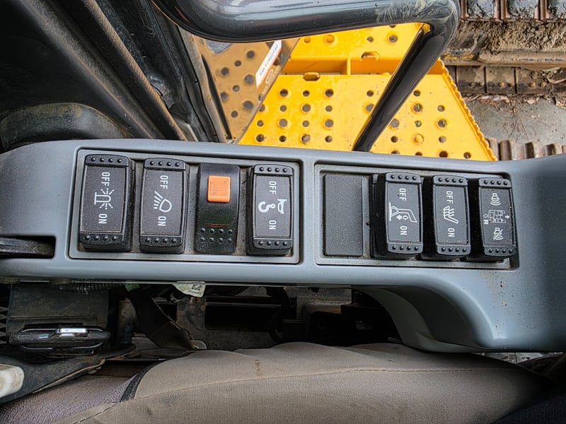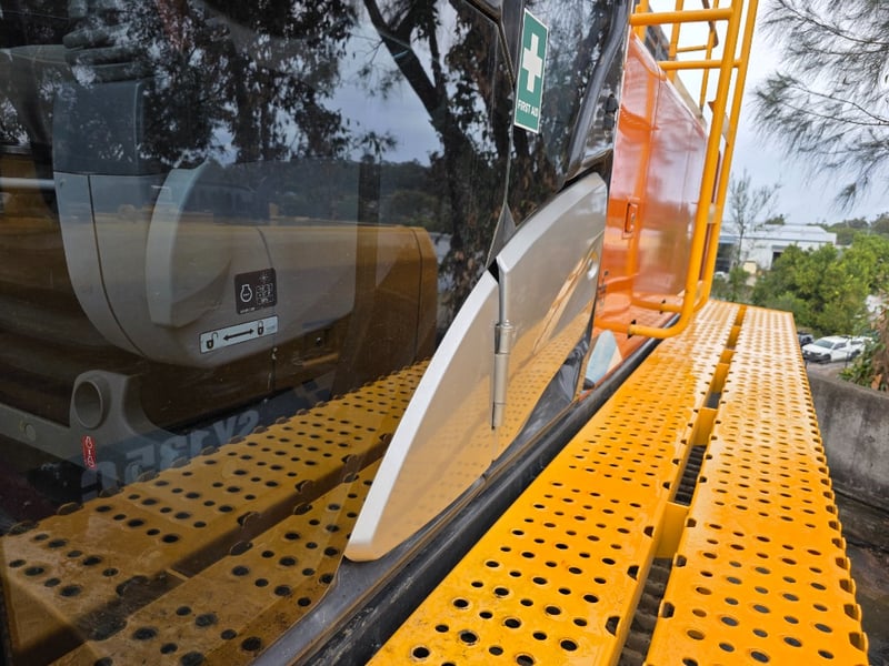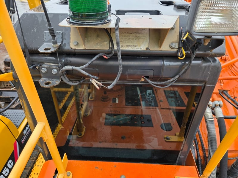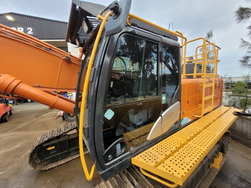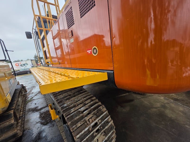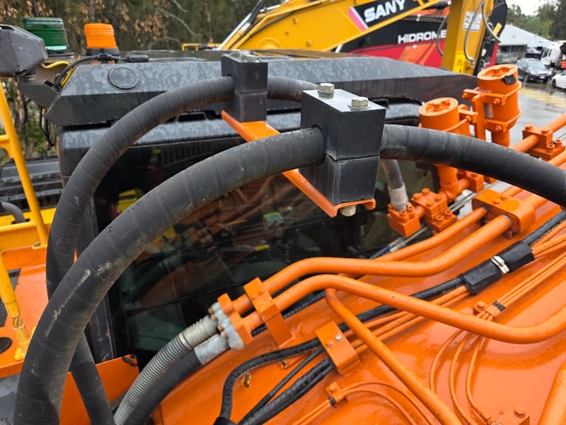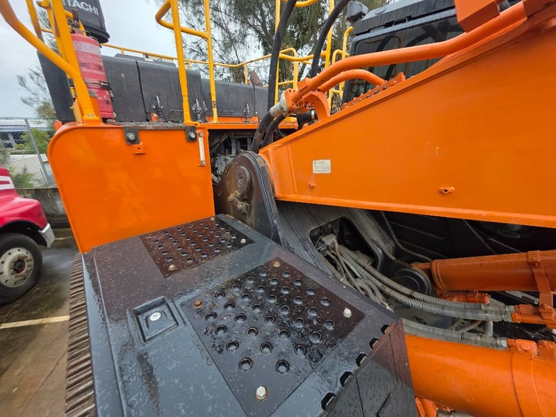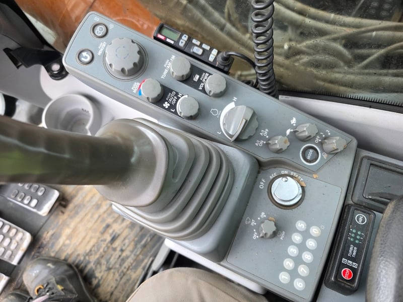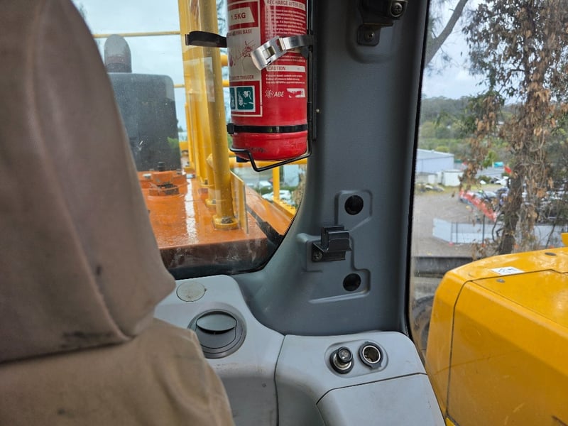 Description: Enclosed cab, tinted windows, work lights, side access steps, external and internal fire extinguisher, battery isolator, reverse camera, emergency stops, interior seat cover, rubber floor mat, heated seat, UHF radio, air-conditioning, turbo timer, roof safety beacon light, battery isolator switch, security start up code start-up Pin code,