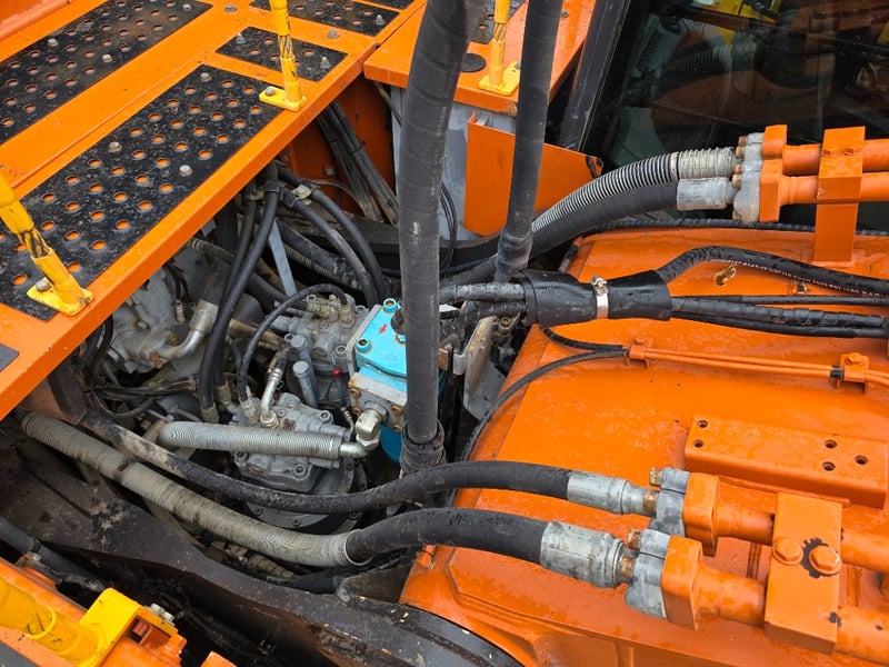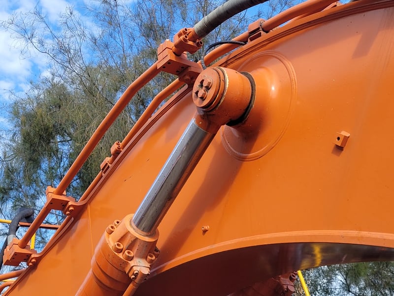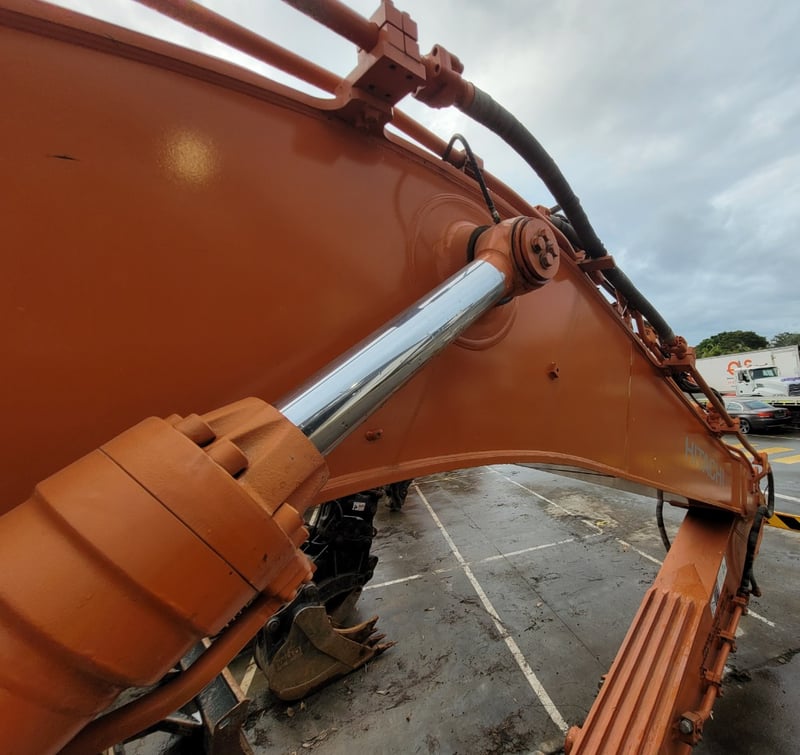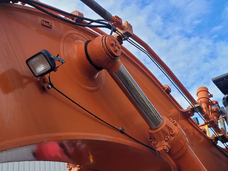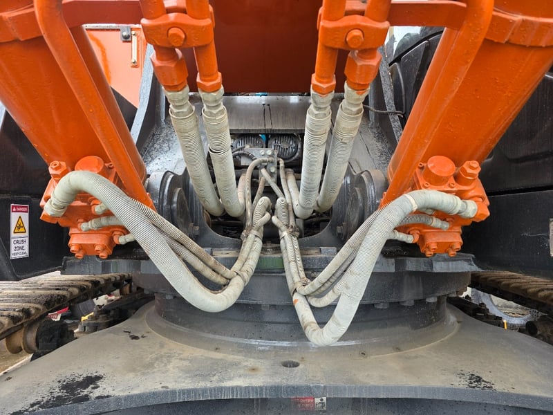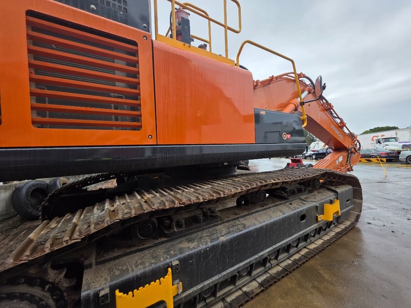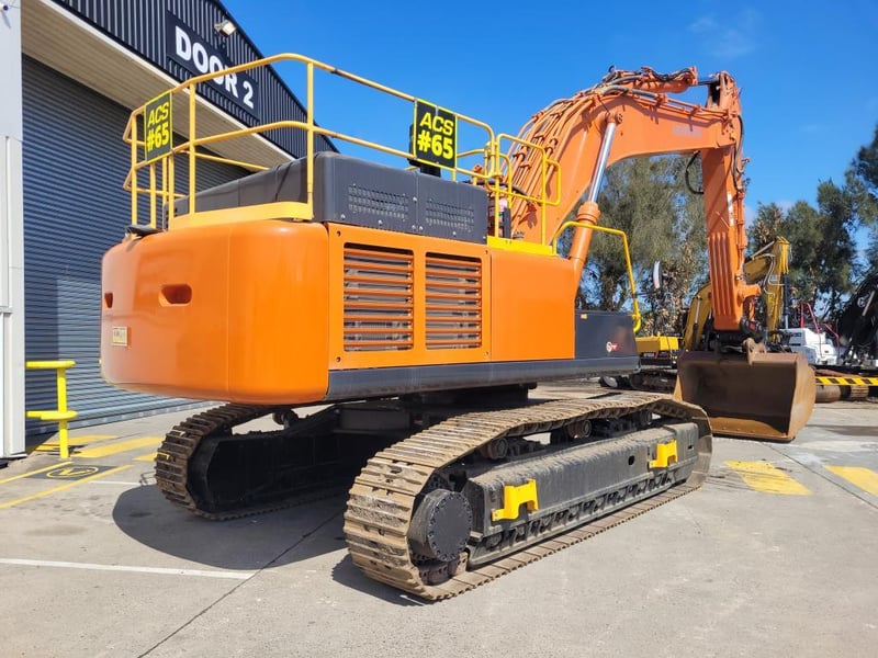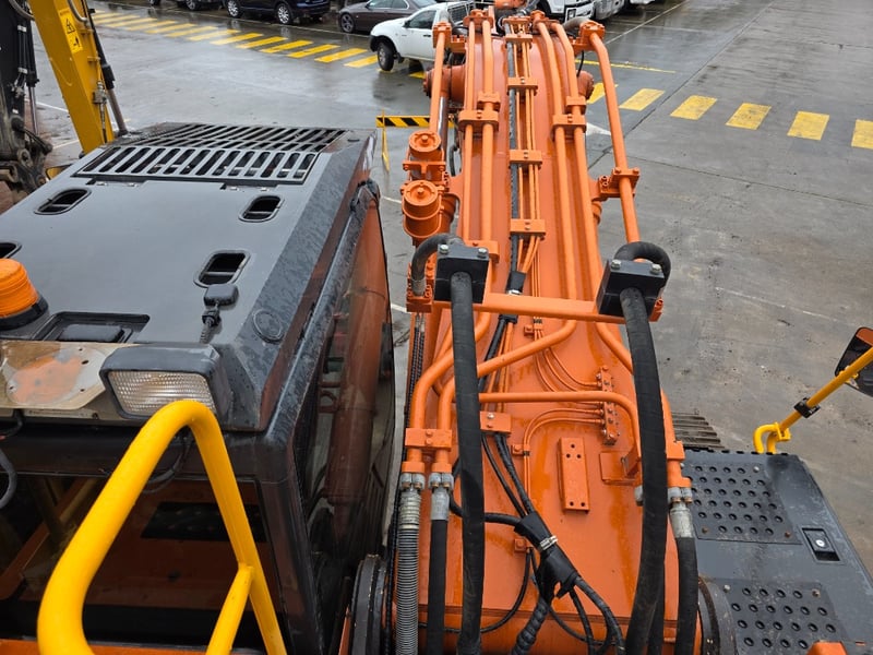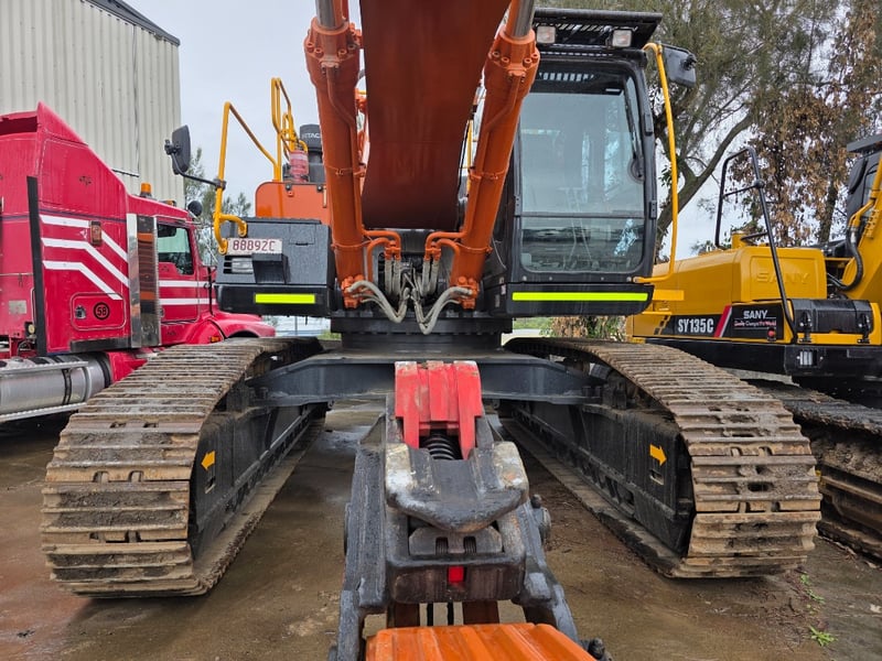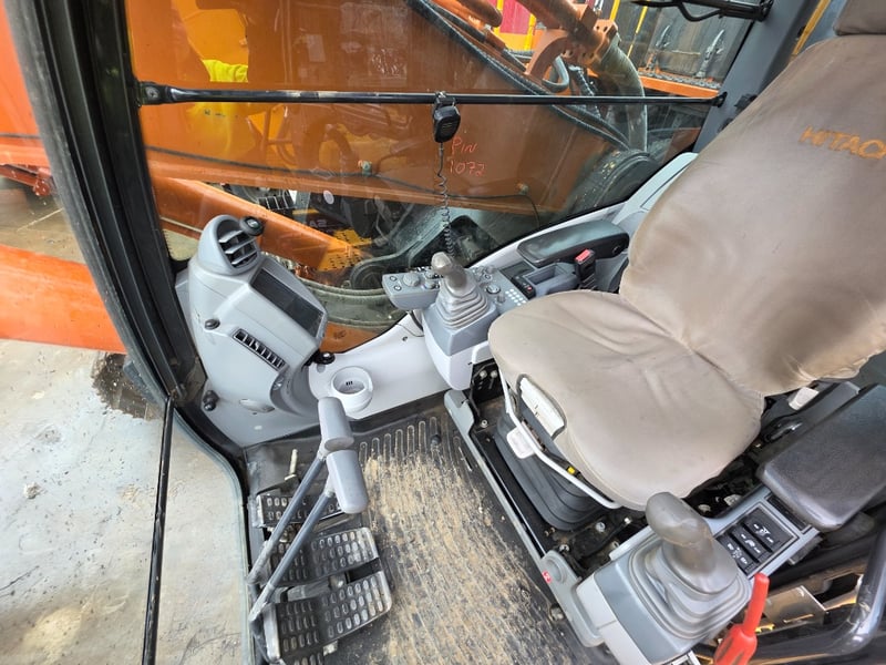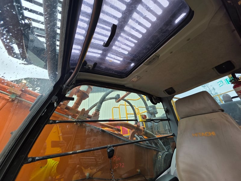 Description: Enclosed cab, tinted windows, work lights, side access steps, external and internal fire extinguisher, battery isolator, reverse camera, emergency stops, interior seat cover, rubber floor mat, heated seat, UHF radio, air-conditioning, turbo timer, roof safety beacon light, battery isolator switch, security start up code start-up Pin code,