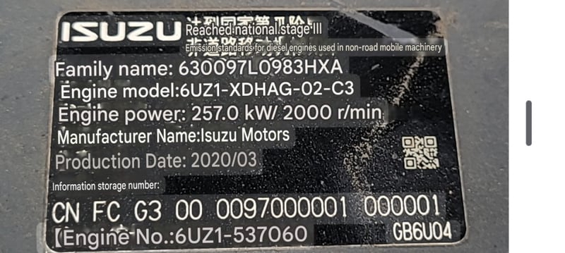 Engine: Isuzu 6uz1-xdhag-02-C3, 6-Cylinder Turbo diesel.