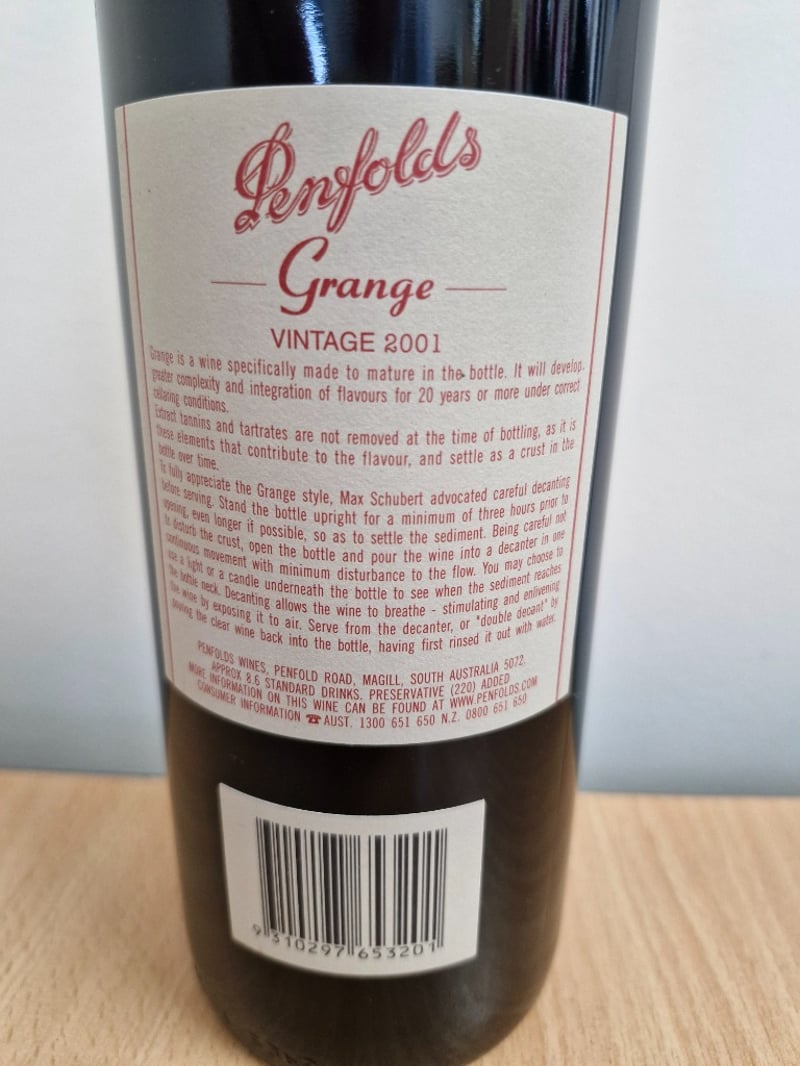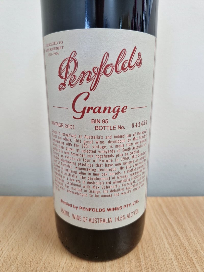 PENFOLDS GRANGE 2001, BIN 95, VINTAGE 2001, 750ml BOTTLE