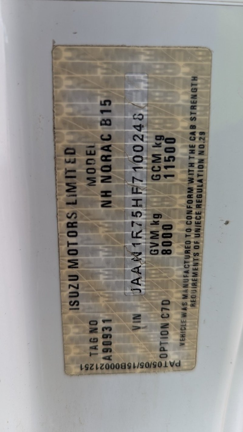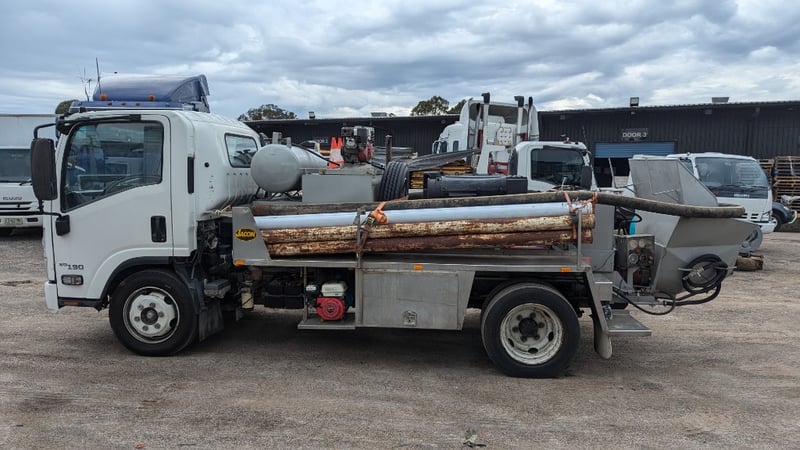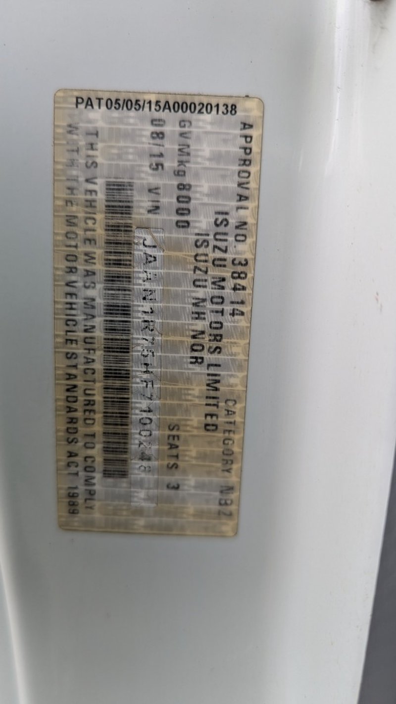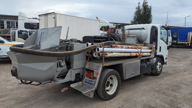 2015 Isuzu NQR NH 80/190 with Jacon Concrete Pump Price Guide - $52,875 - $66,475 (Based on standard condition unmodified, excluding attachments and/or additions) Year: 2015 Make: Isuzu Model: NQR Series: NH Badge: 80/190 Body: Single Cab Chassis Drive Type: Front wheel drive Odometer: Indicating 95,310 Kilometers Engine: 5.2 Turbo Diesel Transmission: 6-Speed Manual Colour: White Seats: 3 Description/extras: Air Conditioning, Power windows, Central locking. 2015 Isuzu NQR N White Configuration: 4 × 2 GVM: 8000 lg GCM: 11500 kg Has Receipts of Service Jacon Concrete Pump 2 × Honda Pumps Key: CTM68. Marks and Scratches. VIN: JAAN1R75HF7100248 ENG No: 4HK1395062 (As per PPSR) Sold unregistered (Key #CTM68 Marple) Lloyds stock #581779+1
