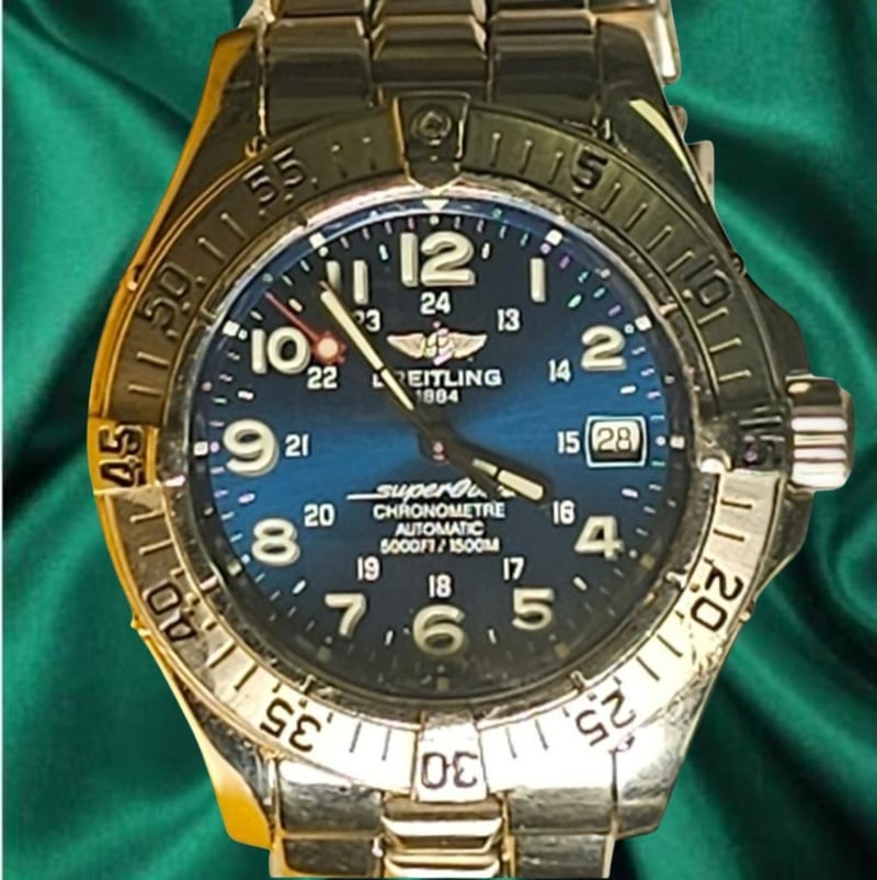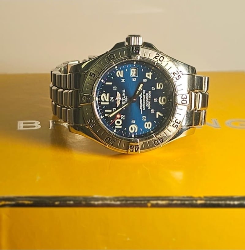 BREITLING SUPEROCEAN A17360 STAINLESS STEEL 42MM Brand: Breiting Model Number: SUPEROCEAN Reference Number: A1360 Production Year: UNKNOWN Dial: BLUE Case: STAINLESS STEEL Case Size: 42MM Bracelet: STAINLESS STEEL Movement: AUTOMATIC Box: YesPapers: Not Included Condition: Good - Refer to Images