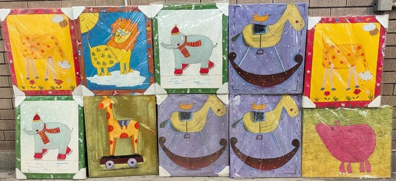 TEN OIL PAINTING ON CANVAS ARTWORKS Artworks Feature Animal Themed Imagery, Artwork Stretched And Ready To Hang Artwork Size Approx: 60Cm X 50Cm Condition: Good - Refer To Images 584844+27