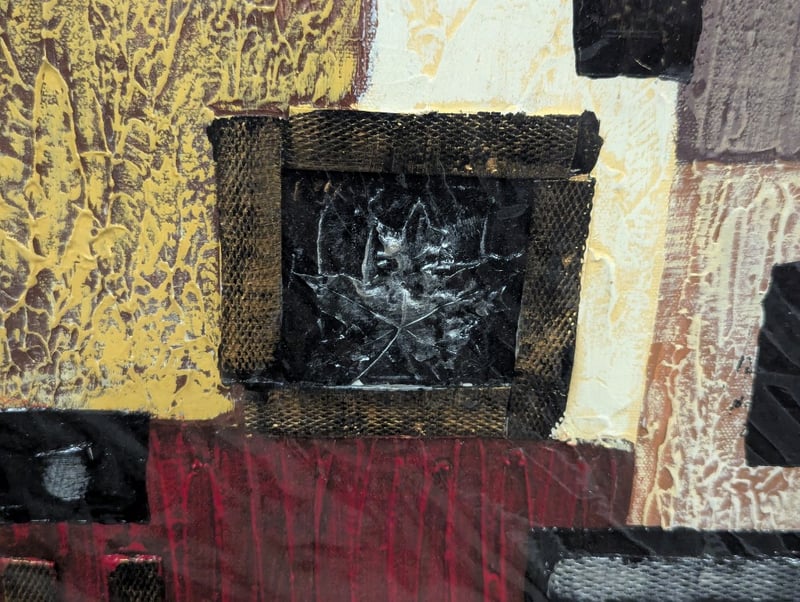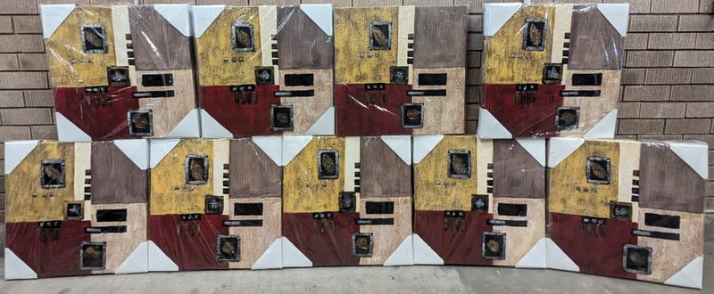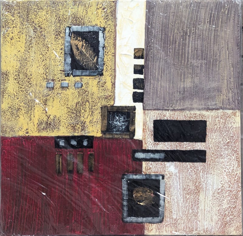 NINE MIXED MEDIA ARTWORKS ON CANVAS Item Size: Height: 60cm, Width: 60cm Artworks Feature Shapes And Leaf Designs Artworks Stretched And Ready To Hang Condition: Good - Refer To Images 584844+21