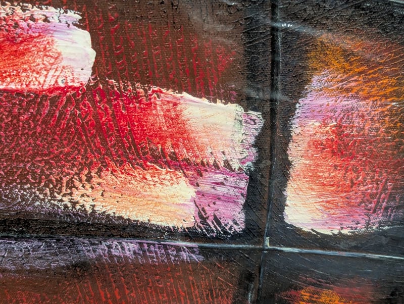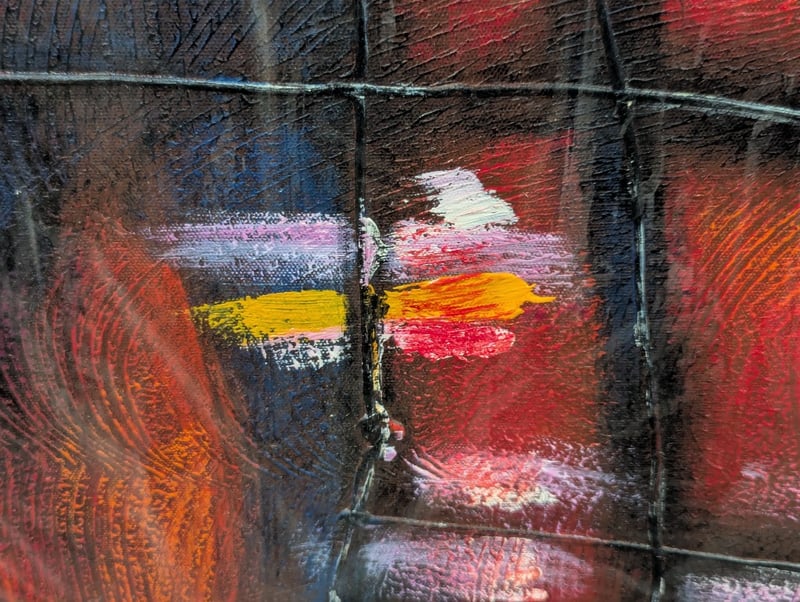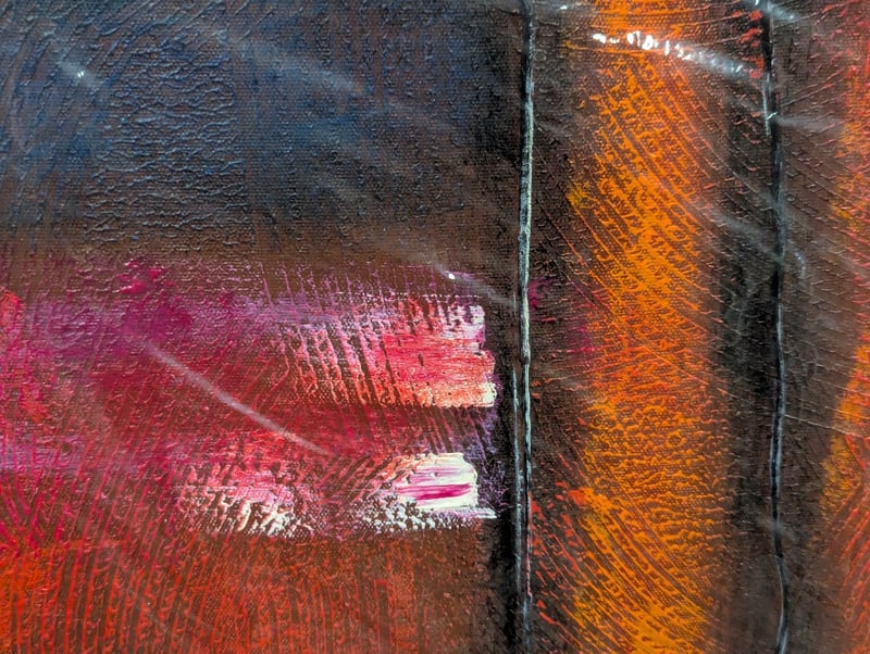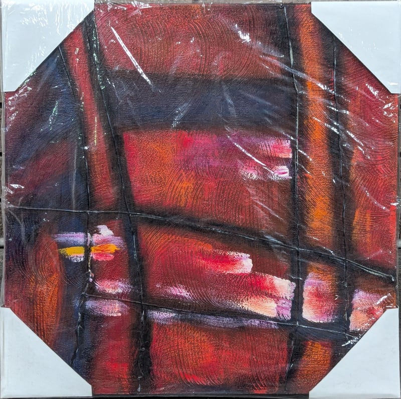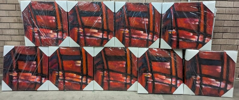 NINE OIL ON CANVAS ARTWORKS Item Size: Height: 60cm, Width: 60cm Artworks Feature Abstract Style Design With Dark Colours Artwork Stretched And Ready To Hang Condition: Good - Refer To Images 584844+22