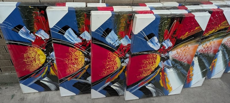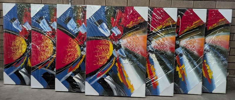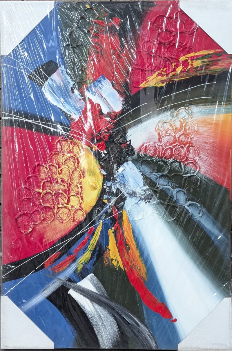 TEN OIL PAINTING ON CANVAS ARTWORKS Item Size: Height: 90cm, Width: 60cm Artworks Features Abstract Design With Various Colours Artwork Stretched And Ready To Hang Condition: Good - Refer To Images 584844+40