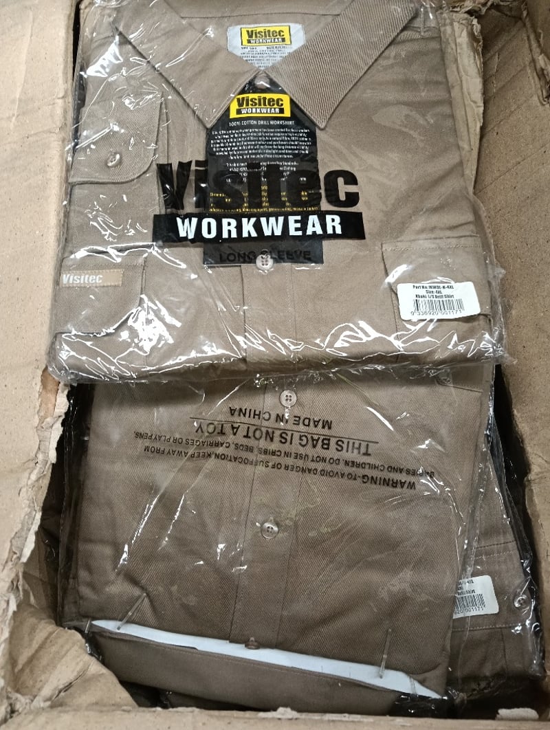 9x Boxes of Workwear – Approx. 20-50 Items per Box, Sizes Vary From S to 4XL Sold as lot Note: Forklift available onsite to assist with loading Contact: Jonathan Naime - 0400 733 207 Location: Prestons, NSW Collections must occur strictly Monday the 1st to Wednesday the 3rd of September