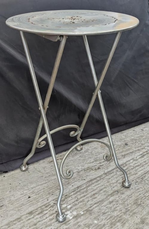 VINTAGE STEEL SIDE TABLE FOLDABLE 36CM DIAMETER, 56CM HEIGHT 586070+2