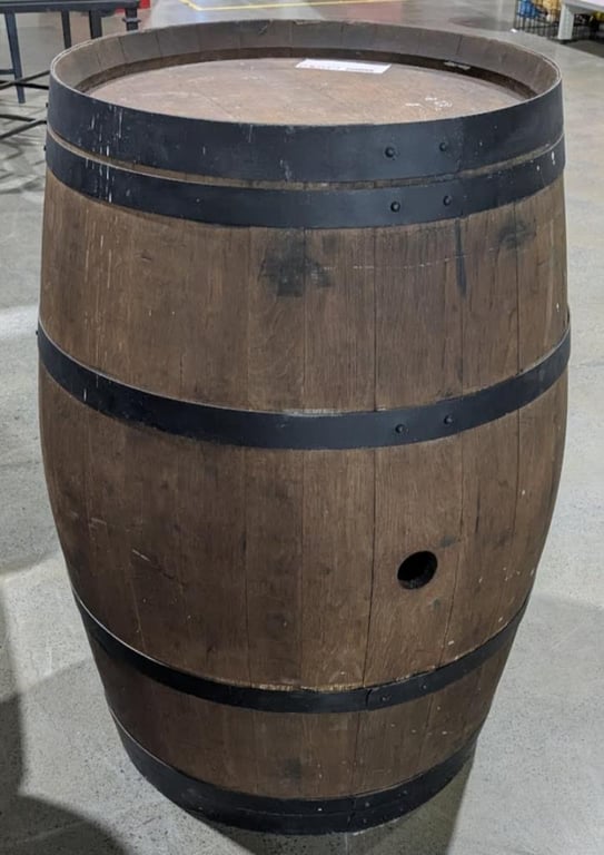 LARGE STANDING WINE OAK BARREL 50 GALLONS BY SYLVAIN FRANCE 93CMH X 60CMD (WIDEST)