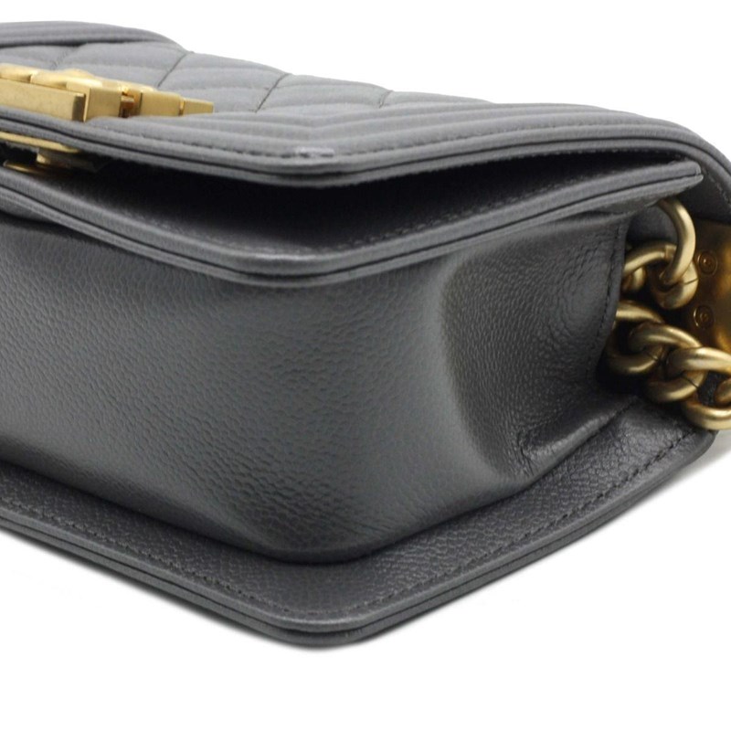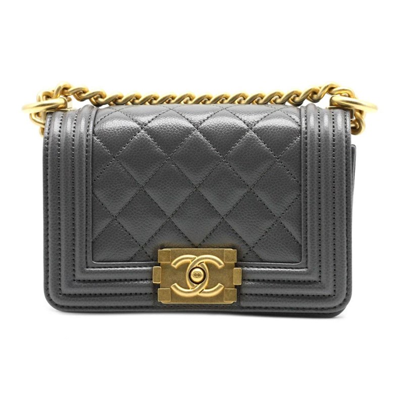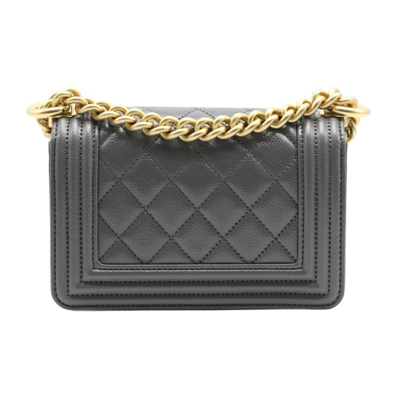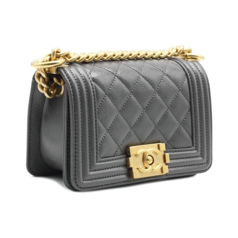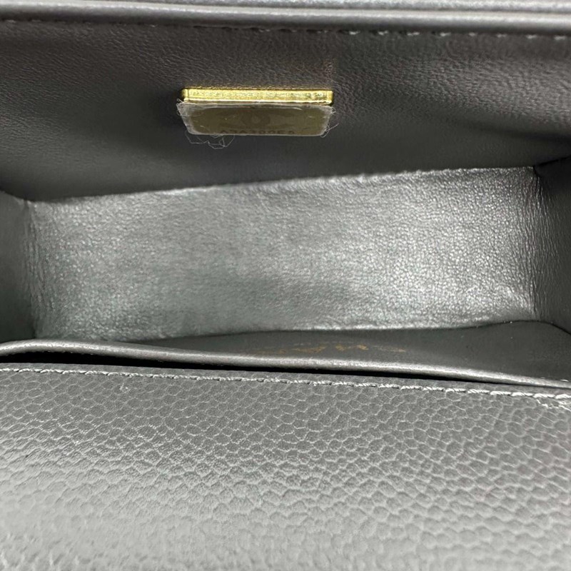 CHANEL GREY QUILTED CAVIAR LEATHER MINI BOY FLAP BAG