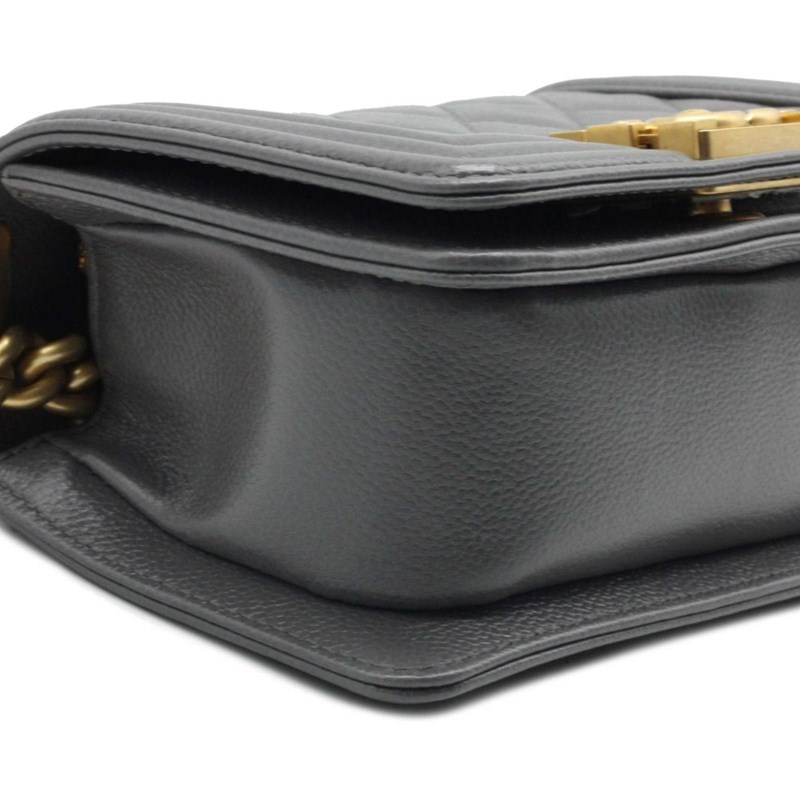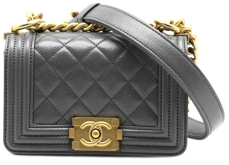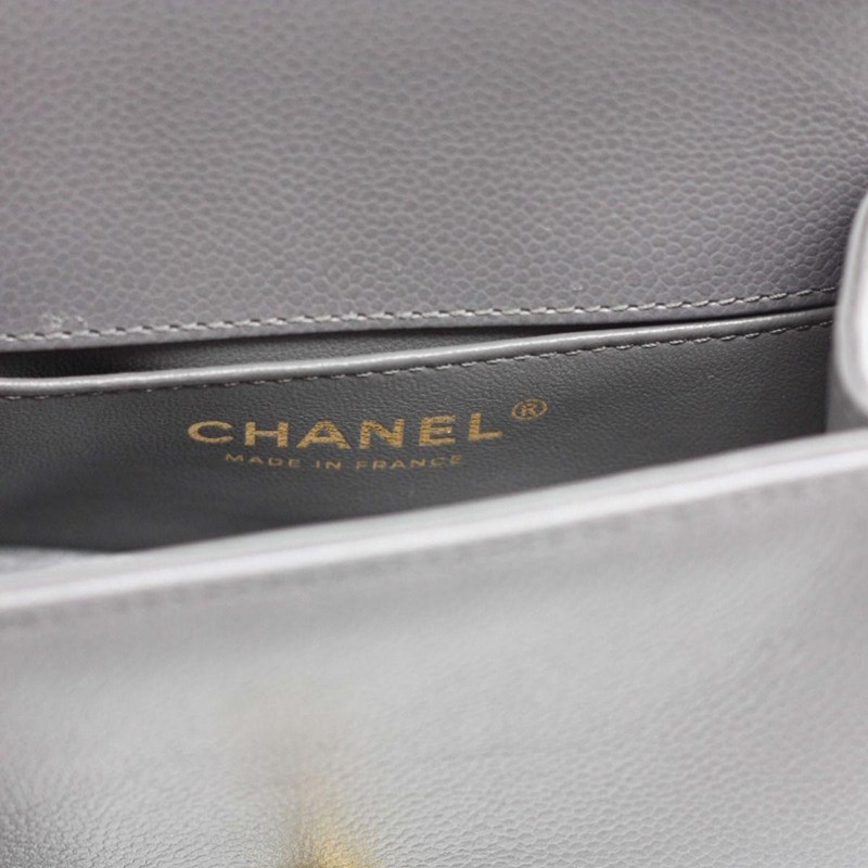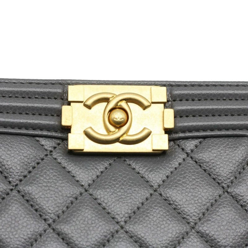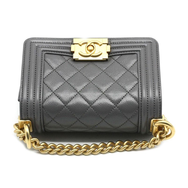 CHANEL GREY QUILTED CAVIAR LEATHER MINI BOY FLAP BAG