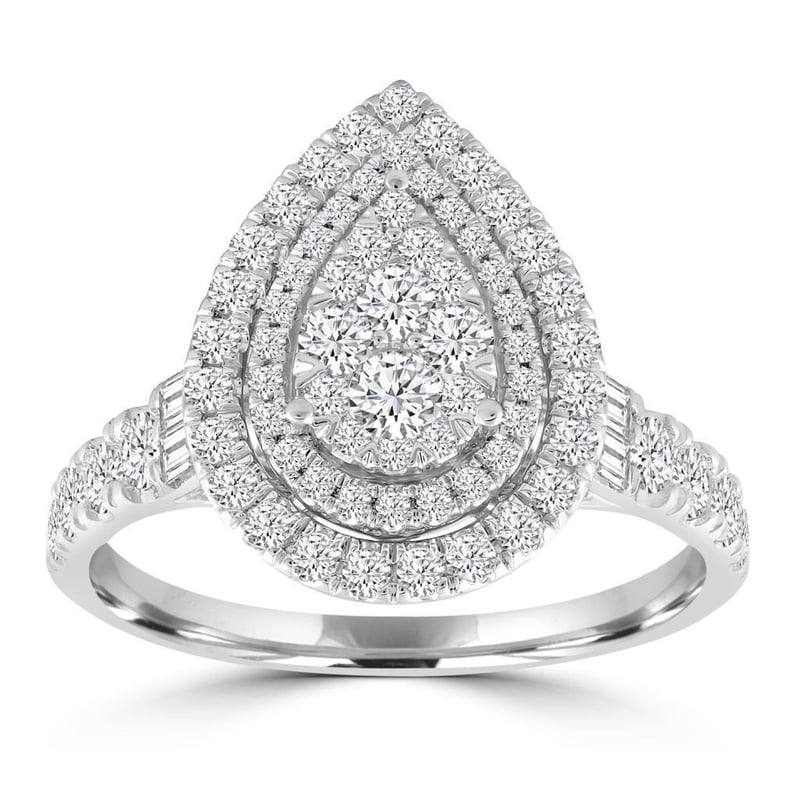 PEAR RING WITH 1CT DIAMONDS IN 18K WHITE GOLD 18K White Gold 1 Carat Natural Diamond Ring. Weight: 3.40 Grams Markings: 18ct Condition: Good - Refer Images 0488278+13