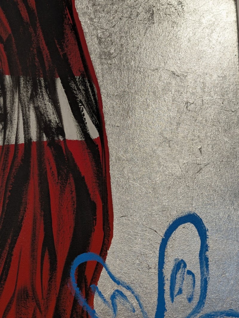 DAVID BROMLEY (1960-)Original Acrylic And Silver Leaf Painting On CanvasTitle: RosieImage Size: 122cm x 91cmItem Size: Height: 122cm, Width: 91.5cm, Depth: 4cm, Weight: 5KgSignature Details: Signed Lower LeftCondition: Good - Refer To Images586024+1
