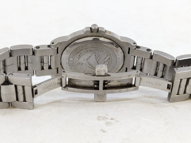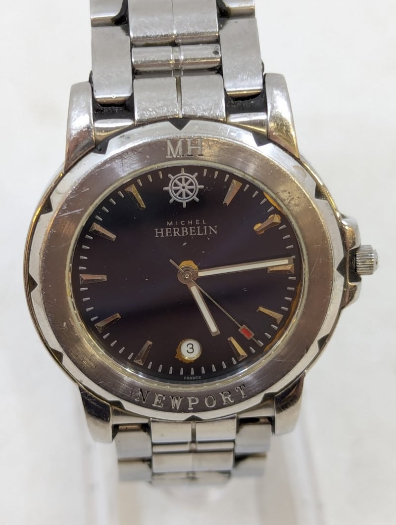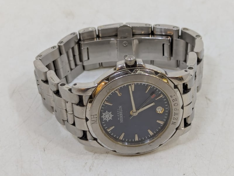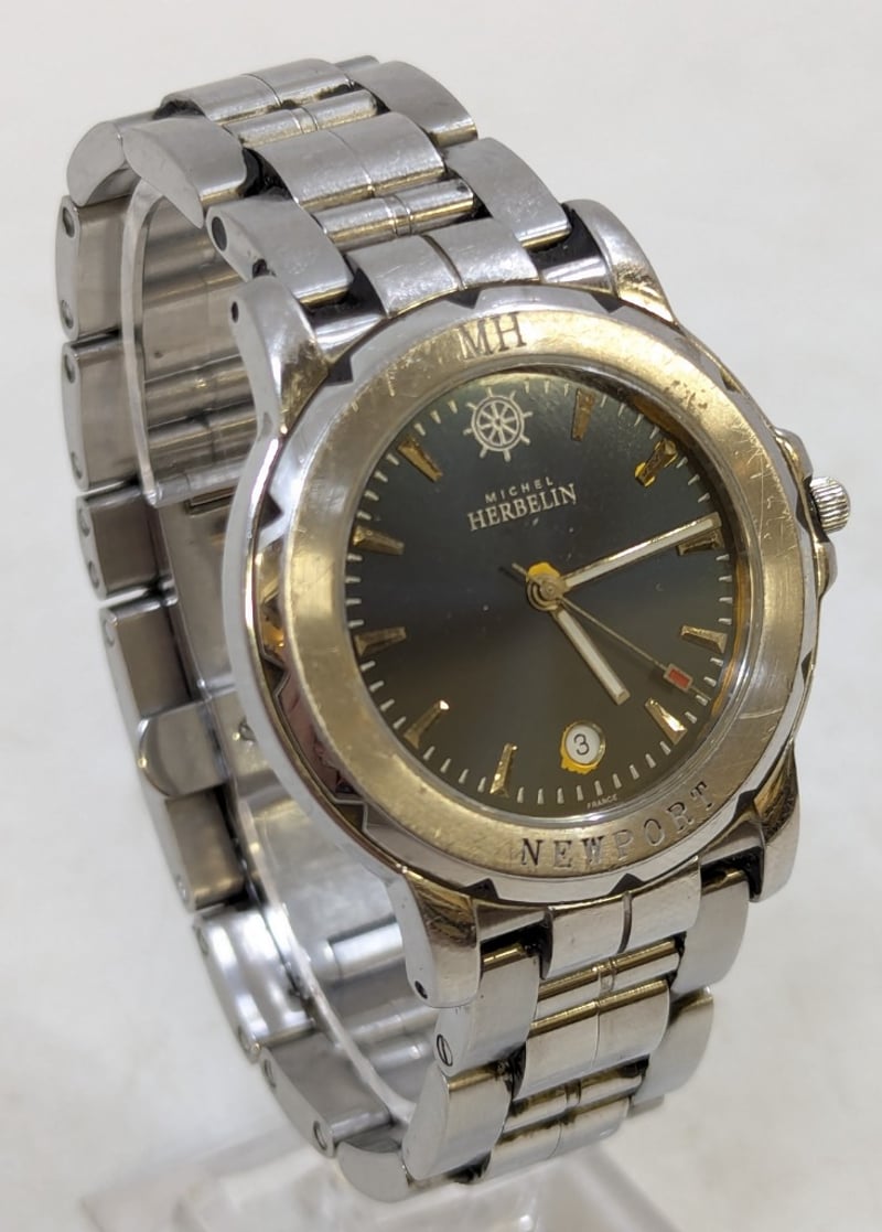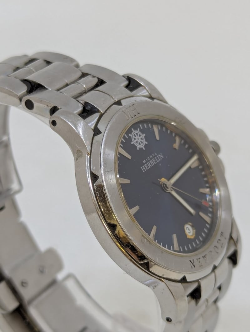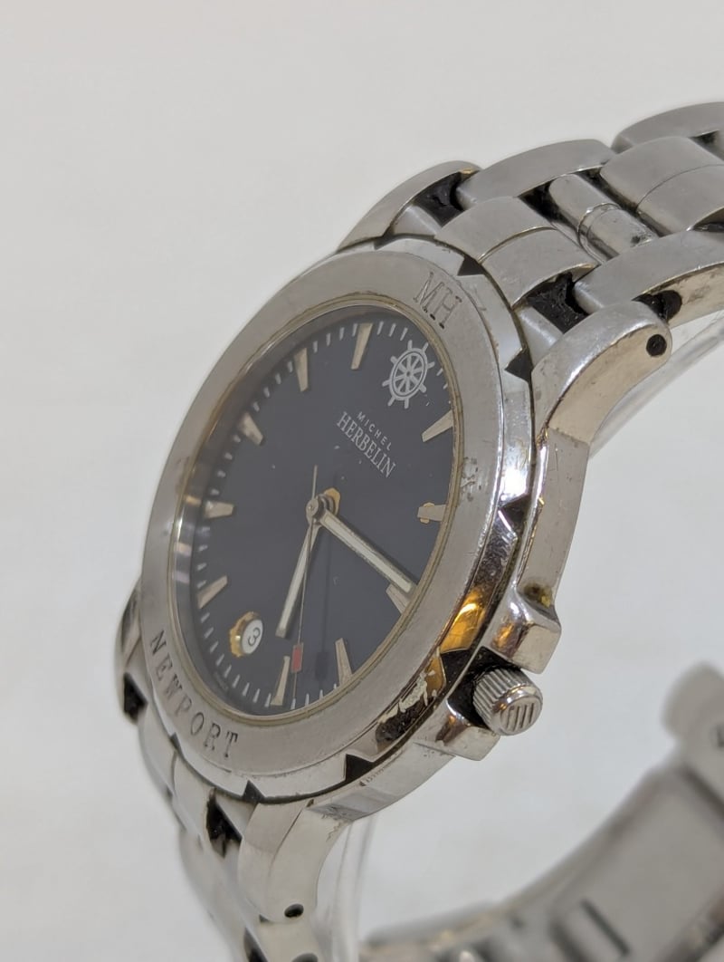 MICHEL HERBELIN NEWPORT CASE DESCRIPTION: STAINLESS STEELCASE SIZE: 33MMBRACELET: STAINLESS STEELBOX: NOT INCLUDEDPAPERS: NOT INCLUDEDAdditional Information: Blue DialNon Numerical Hour MarkersLuminous HandsDate Display At 6 O'Clock PositionButterfly ClaspMovement Untested584956+16