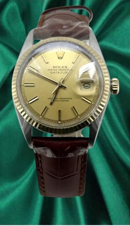 ROLEX DATEJUST 36 1601 1958 Price Guide - $5,500 - $7,000 REFERENCE NO: 1601 PRODUCTION YEAR: 1958 DIAL: CHAMPAGNE CASE DESCRIPTION: STANLESS STEEL WITH 18CT YELLOW GOLD CASE SIZE: 36 BRACELET: ALLIGATOR LEATHER MOVEMENT: AUTOMATIC BOX: NOT INCLUDED PAPERS: NOT INCLUDED Condition: Used - Refer Images Additional Information: Serial# 1236*** SR
