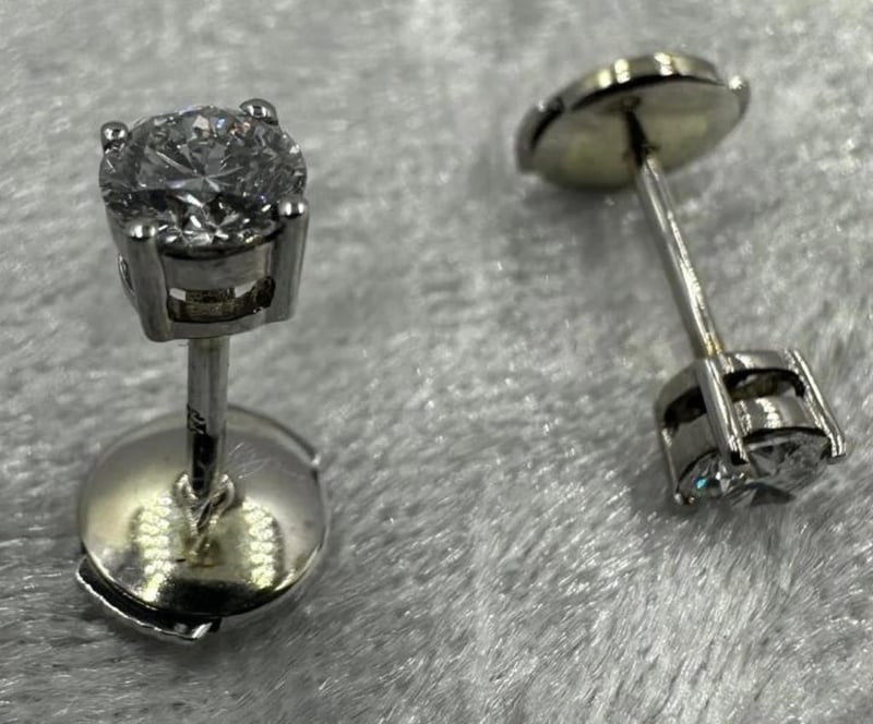 1.01 TCW 9K WHITE GOLD 4 PRONG STUD EARRINGS WITH SPRING LOCKS LAB GROWN Diamonds: 2 X 0.50 Ct Round Brilliant Stones. 1.01 Total Carat Weight. Lab Grown Diamonds. Shape: Round Brilliant Specs: E/Vvs2+ Quality 100% Eye Clean And Non Cloudy Setting: 9K White Gold 4 Claw Studs With Springlocks Condition: Good - Refer To Images CROSSDOCK 162956+17