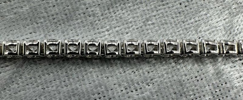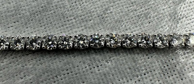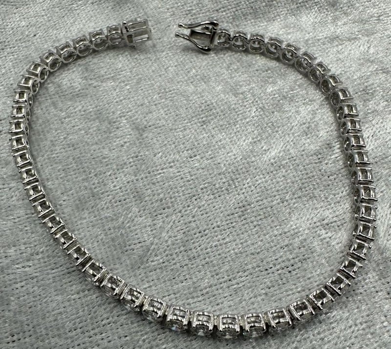 18K WHITE GOLD TENNIS BRACELET WITH LAB GROWN ROUND BRILLIANT DIAMONDS F/Vs Minimum Quality. 52 X 0.12 Ct, 5.96 Total Carat Weight. Box Clasp, Double Safety. 18K White Gold, 4 Claw Basket Setting. Length: 17.5Cm Condition: Good - Refer To Images CROSSDOCK 162956+15