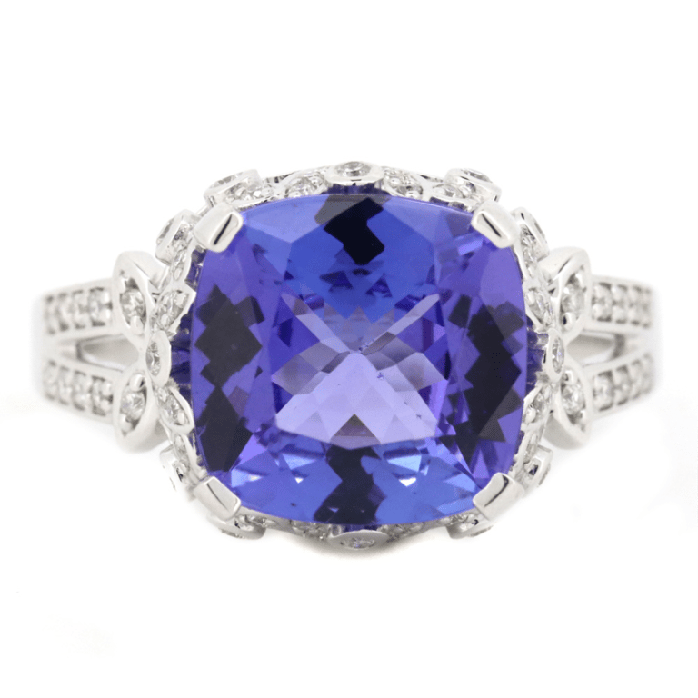 14K WHITE GOLD, TANZANITE AND DIAMOND, DRESS RING. The Centre Features, One Cushion Cut, Vivid Strong Violet, Tanzanite (4.22Ct, Slightly Included), 4 Claw Set. Embellishing The Setting And Band Are, 84 Round Brilliant Cut, Diamonds (0.33Ct Tdw, G-H Colour, Si1-Si2 Clarity), Bead Set. Ring Size O 1/2. Valuations Provided by an Independent Third-Party Professional Not Directly Associated With Lloyds Auctions at AUD $$32,000.00This valuation has been conducted by an independent third-party professional. The valuation amount is an assessment by the issuing valuer and does not reflect the auction value of the item. Any inquiries regarding the valuation should be directed to the issuing valuer (refer to contact details on the certificate), as Lloyds Auctions has no affiliation or influence over the valuation, the valuer, or the stated amount. Condition: Good - Refer Images 0645832+5249