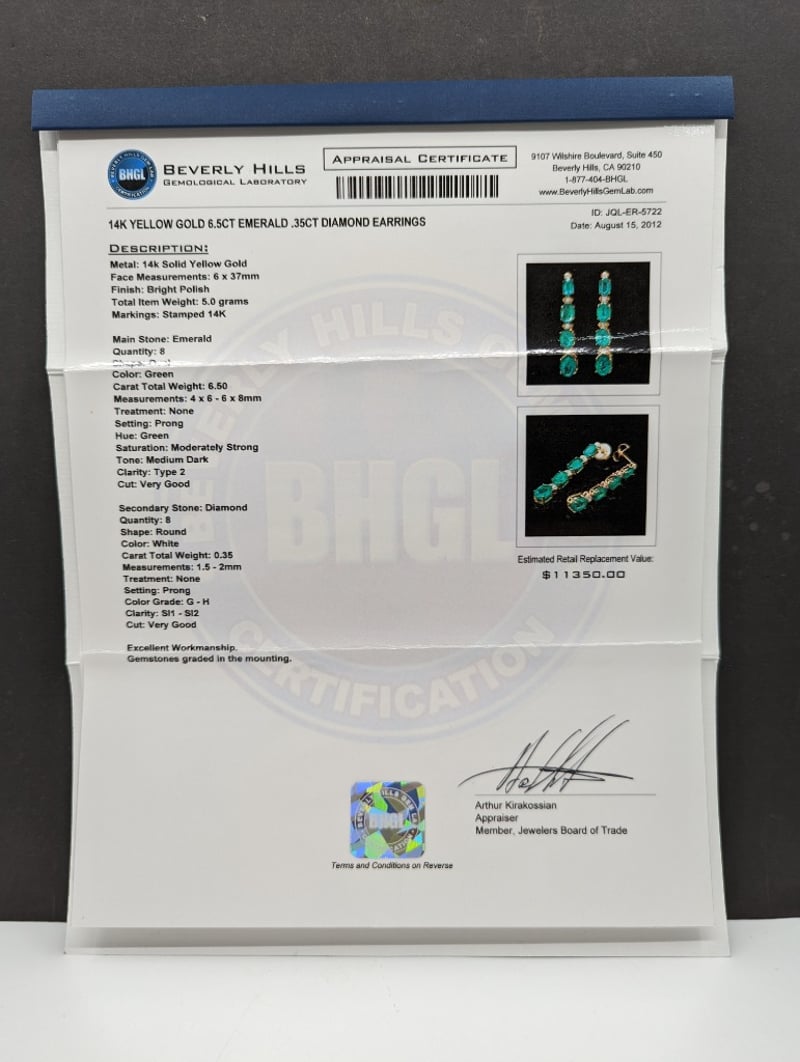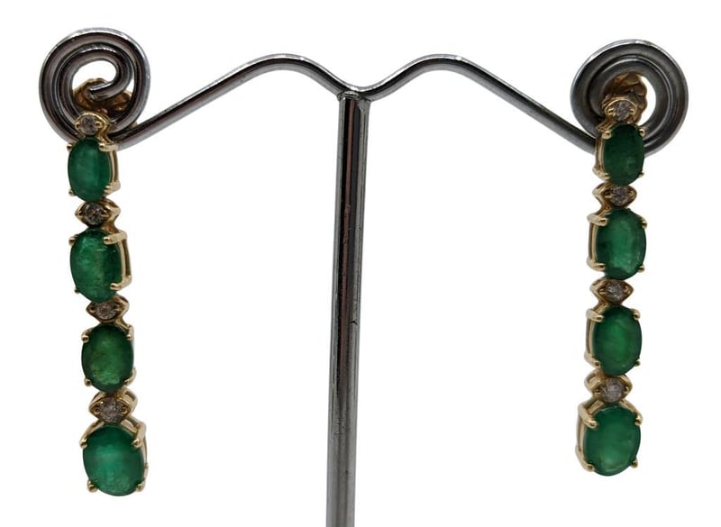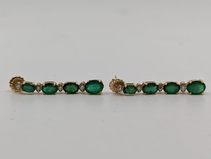 14K YELLOW GOLD EMERALD AND DIAMOND EARRINGSA Pair Of Earrings With 6.50Tcw Oval Cut Emeralds And 0.35Tcw Round Cut Diamonds On Yellow Gold FramesTotal Item Weight: 5.00gCondition: Good - Refer To ImagesThis valuation has been conducted by an independent third-party professional. The valuation amount is an assessment by the issuing valuer and does not reflect the auction value of the item.Any inquiries regarding the valuation should be directed to the issuing valuer (refer to contact details on the certificate), as Lloyds Auctions has no affiliation or influence over the valuation, the valuer, or the stated amount.Insurance Replacement Valuation Amount: $11,350.00VAULT586187+3