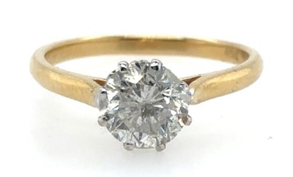 18CT YELLOW AND WHITE GOLD DIAMOND RING Total Item Weight: 3.04gms Featuring A Round Brilliant Cut Diamond, Claw Set, 1.60Ct In Weight (7.1 Mm), P1 In Clarity And G/H In Colour. Ring Is Finger Size O Jewellery Valuations Provided By A Third Party Professional Not Directly Associated With Lloyds Auctions at AUD $17500This Insurance Valuation has been provided by a registered Jewellery Valuer and is intended for insurance purposes only. The valuation amount has no bearing on the auction value of the item. Any questions regarding the valuation should be directed to the issuing Valuer (refer to contact details on the certificate) as Lloyds have no association or relationship with the Valuer or the valuation amount contained within the valuation. Condition: Excellent- Refer Images 0162826+6Crossdock