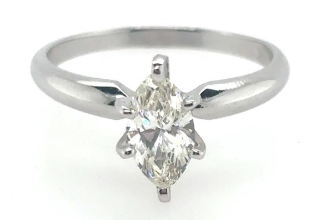 14CT WHITE GOLD (XRF TESTED) DIAMOND RING Total Item Weight: 2.54gms Featuring A Marquise Cut Diamond, Claw Set, 0.72Ct In Weight (4.7 X 9.3Mm), Si In Clarity And I In Colour. Ring Is Finger Size L 1/2 Jewellery Valuations Provided By A Third Party Professional Not Directly Associated With Lloyds Auctions at AUD $7300This Insurance Valuation has been provided by a registered Jewellery Valuer and is intended for insurance purposes only. The valuation amount has no bearing on the auction value of the item. Any questions regarding the valuation should be directed to the issuing Valuer (refer to contact details on the certificate) as Lloyds have no association or relationship with the Valuer or the valuation amount contained within the valuation. Condition: Excellent- Refer Images 0162826+9Crossdock