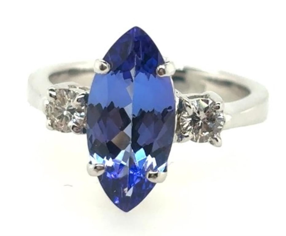 18CT WHITE GOLD TANZANITE AND DIAMOND RING Total Item Weight: 5.8gms Featuring Marquise Cut Tanzanite, Claw Set, 2.42Ct In Weight (6.75 X 14.4Mm), And Deep Violet Blue In Colour. 2 Round Brilliant Cut Diamonds, Claw Set, 0.44Ct In Total Combined Weight (3.4Mm), Vs In Clarity And H/I In Colour. Ring Is Finger Size L 1/2 Jewellery Valuations Provided By A Third Party Professional Not Directly Associated With Lloyds Auctions at AUD $10880This Insurance Valuation has been provided by a registered Jewellery Valuer and is intended for insurance purposes only. The valuation amount has no bearing on the auction value of the item. Any questions regarding the valuation should be directed to the issuing Valuer (refer to contact details on the certificate) as Lloyds have no association or relationship with the Valuer or the valuation amount contained within the valuation. Condition: Excellent- Refer Images 0162826+16Crossdock
