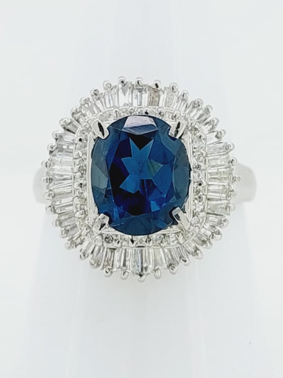 PLATINUM TOPAZ AND DIAMOND HALO COCKTAIL RINGThis Ring Features One Oval Cut Topaz Set With Four Squared Claws, Surrounded By A Halo Of Forty Tapered Baguette Cut Diamonds And Twenty Eight Round Brilliant Cut Diamonds, All Set In Rounded Claws, Following Into A Wire Basket. Finger Size: 18.50MmTotal Item Weight: 9.84gMarkings: Pt900Condition: Good - Refer To ImagesThis valuation has been conducted by an independent third-party professional. The valuation amount is an assessment by the issuing valuer and does not reflect the auction value of the item.Any inquiries regarding the valuation should be directed to the issuing valuer (refer to contact details on the certificate), as Lloyds Auctions has no affiliation or influence over the valuation, the valuer, or the stated amount.Insurance Replacement Valuation Amount: $11,120.00CROSSDOCK162949+15