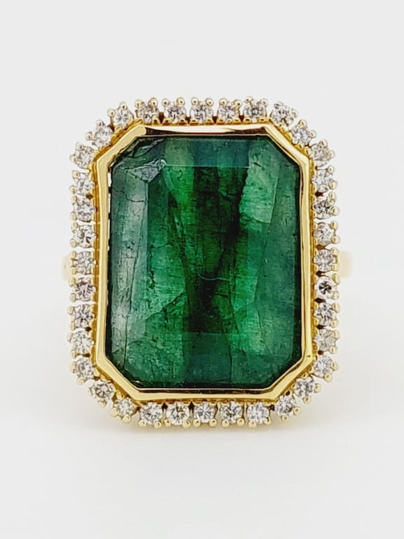 18K YELLOW GOLD EMERALD AND DIAMOND DRESS RINGThe Emerald Cut Emerald Is Mounted With A Surround Of Round Brilliant Cut Diamonds And Finished On A 1.90Mm Half Round Ring. Size NTotal Item Weight: 6.88gMarkings: 750Condition: Good - Refer To ImagesThis valuation has been conducted by an independent third-party professional. The valuation amount is an assessment by the issuing valuer and does not reflect the auction value of the item.Any inquiries regarding the valuation should be directed to the issuing valuer (refer to contact details on the certificate), as Lloyds Auctions has no affiliation or influence over the valuation, the valuer, or the stated amount.Insurance Replacement Valuation Amount: $16,700.00CROSSDOCK162949+3