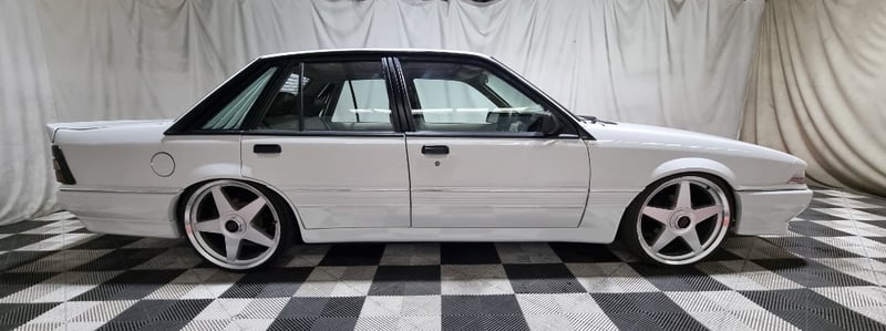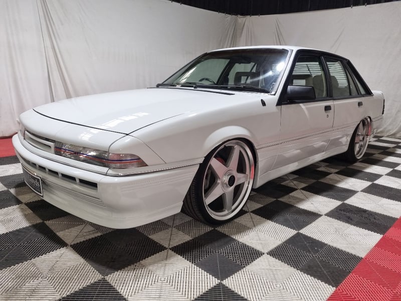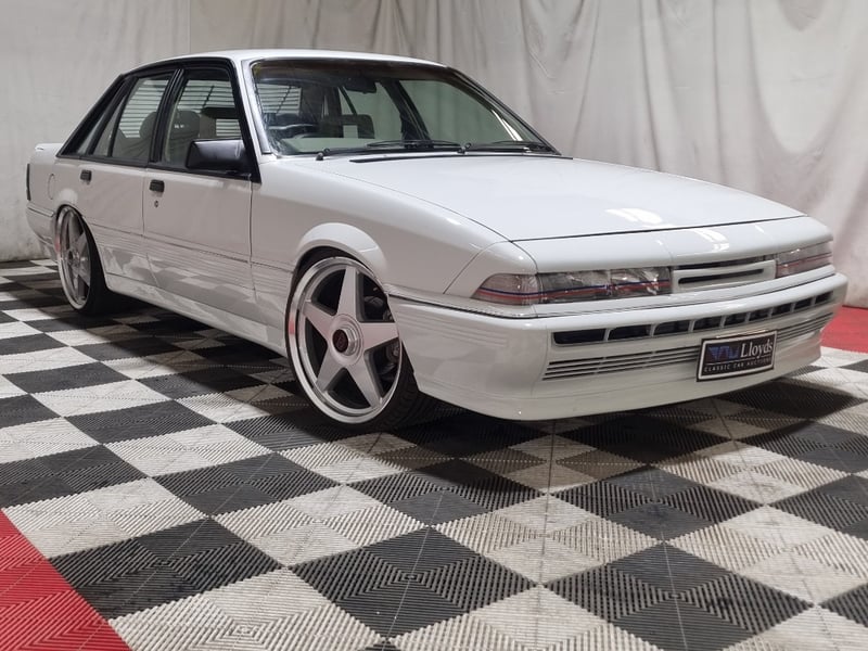 A tastefully modified VL finished in White and presenting as a Calais LE tribute, equipped with a factory-style turbo setup and a 5-speed manual transmission. Odometer indicates 227,867 km.
